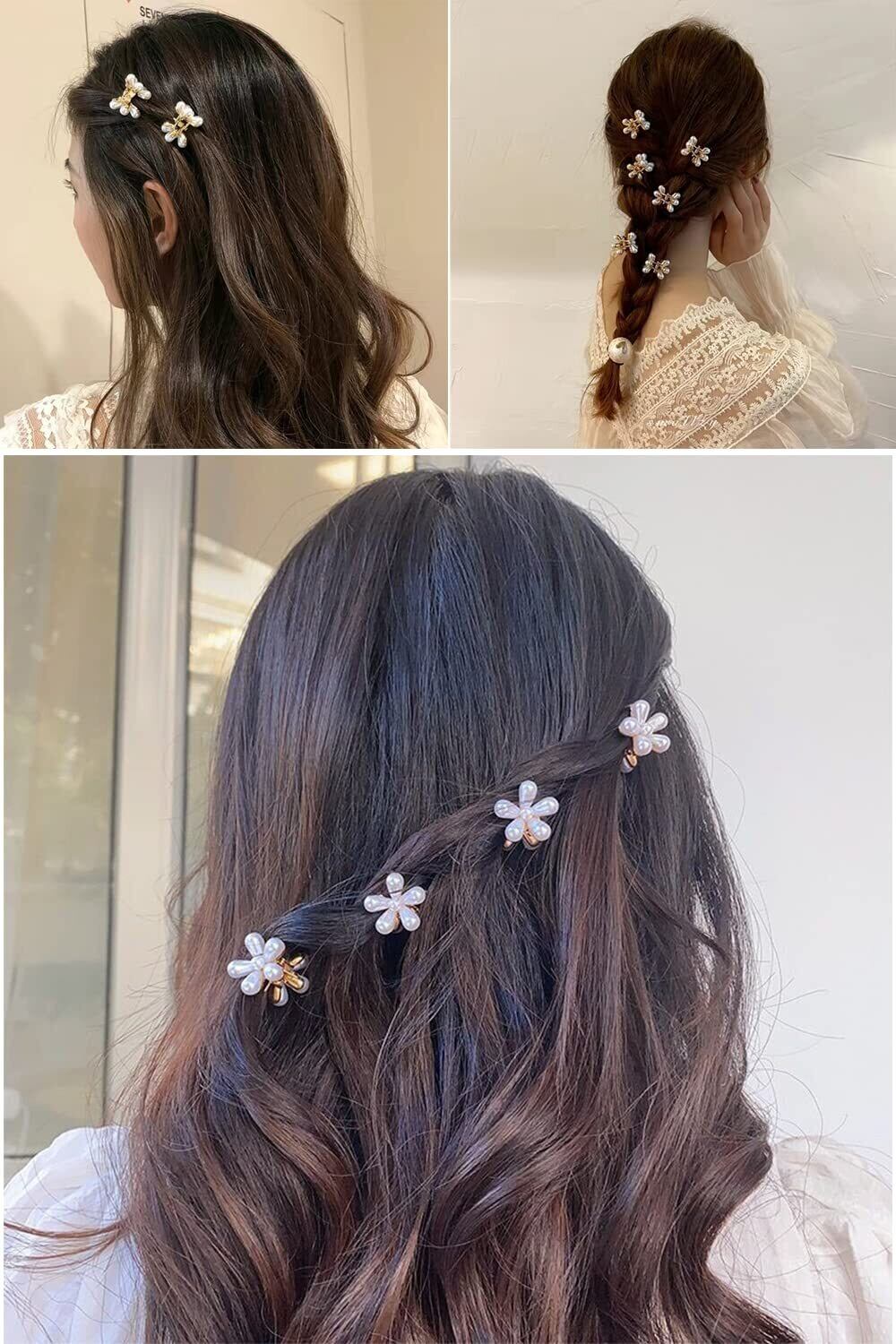 LIKENNY ミニヘアクリップ ヘアピン 花 前髪クリップ 真珠のヘアクリップ ヘアアクセサリー 可愛い 髪飾り バンスクリップ 髪留め 子供 誕生日 卒業式 入学式 結婚式 10個入り