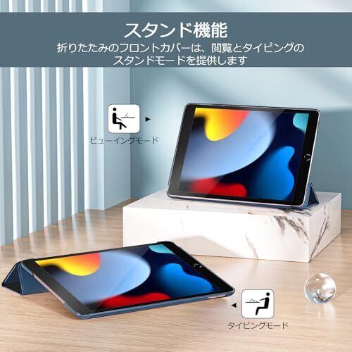 ProCase iPad 9/8/7 ケース (2021 2020 2019) 半透明バックカバー 軽量 スタンド iPad 10.2" 対応 - ネイビー