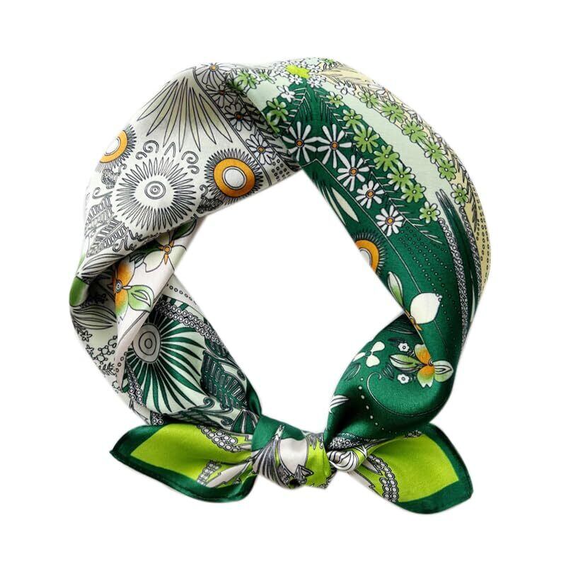 [BRMM MIA] 100% シルク 53cm 正方形レディース スカーフ 通勤 トオフィススカーフ ハンカチ スカーフシルク バレンタインギフト (Green)