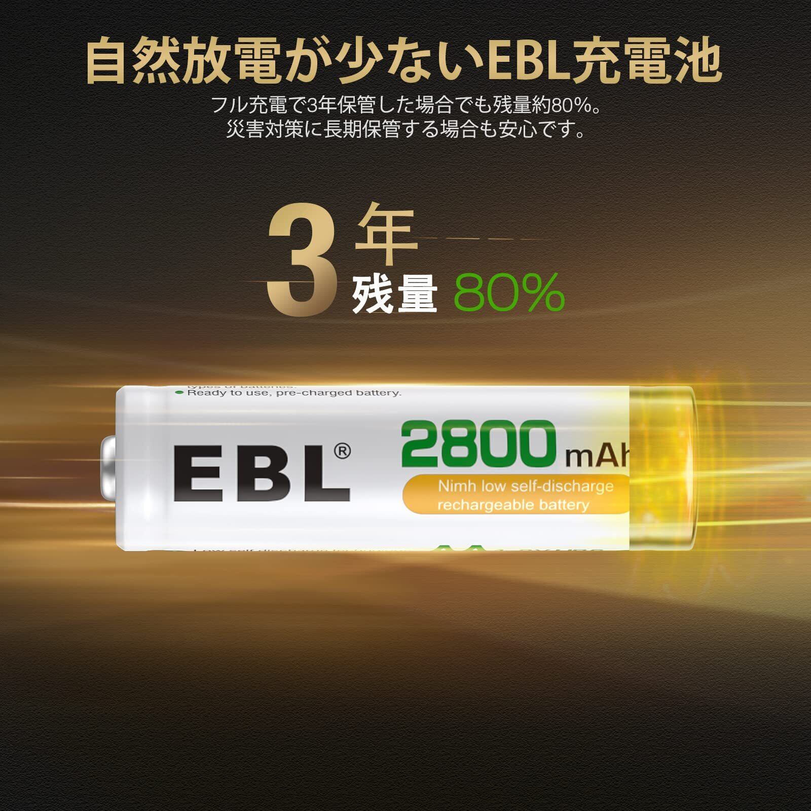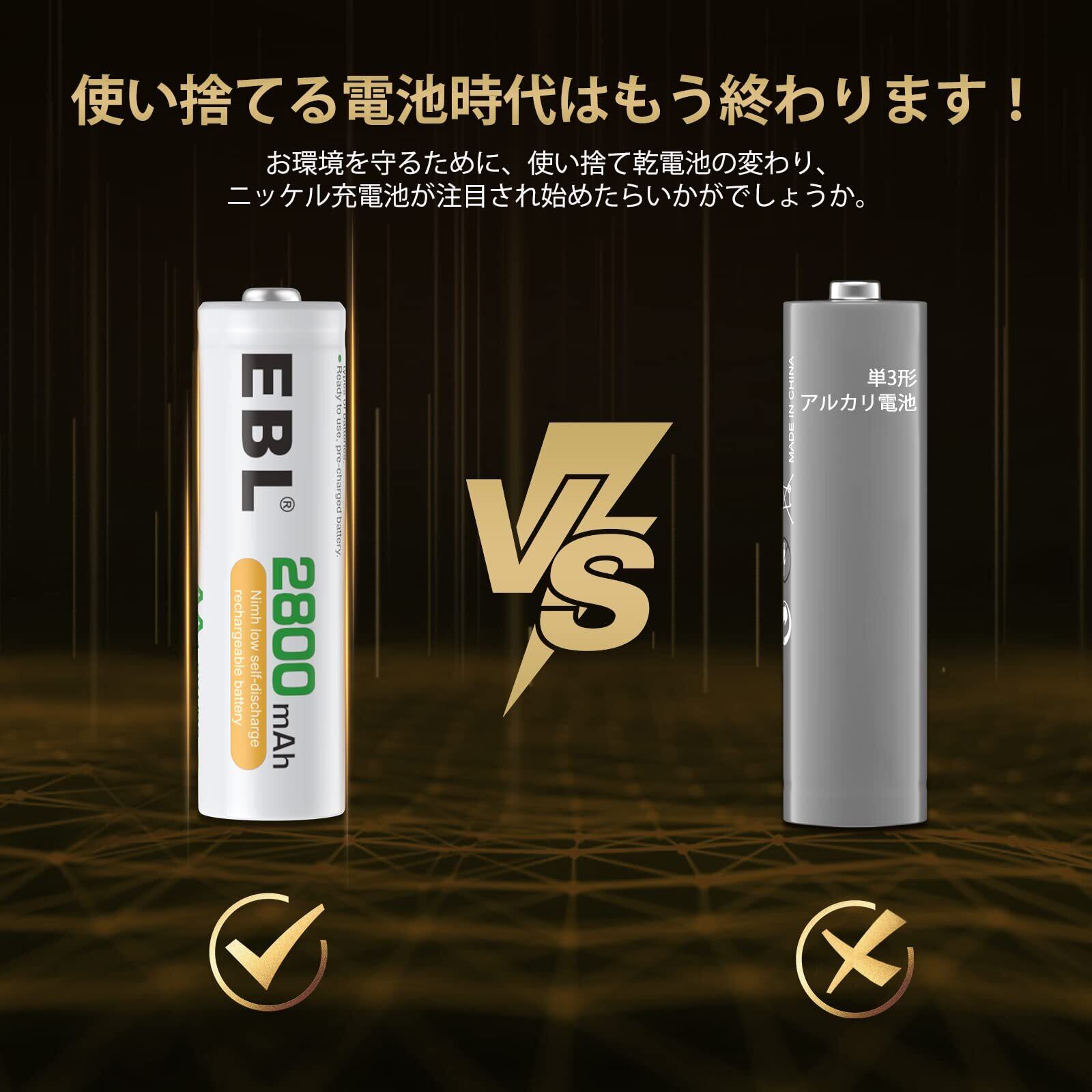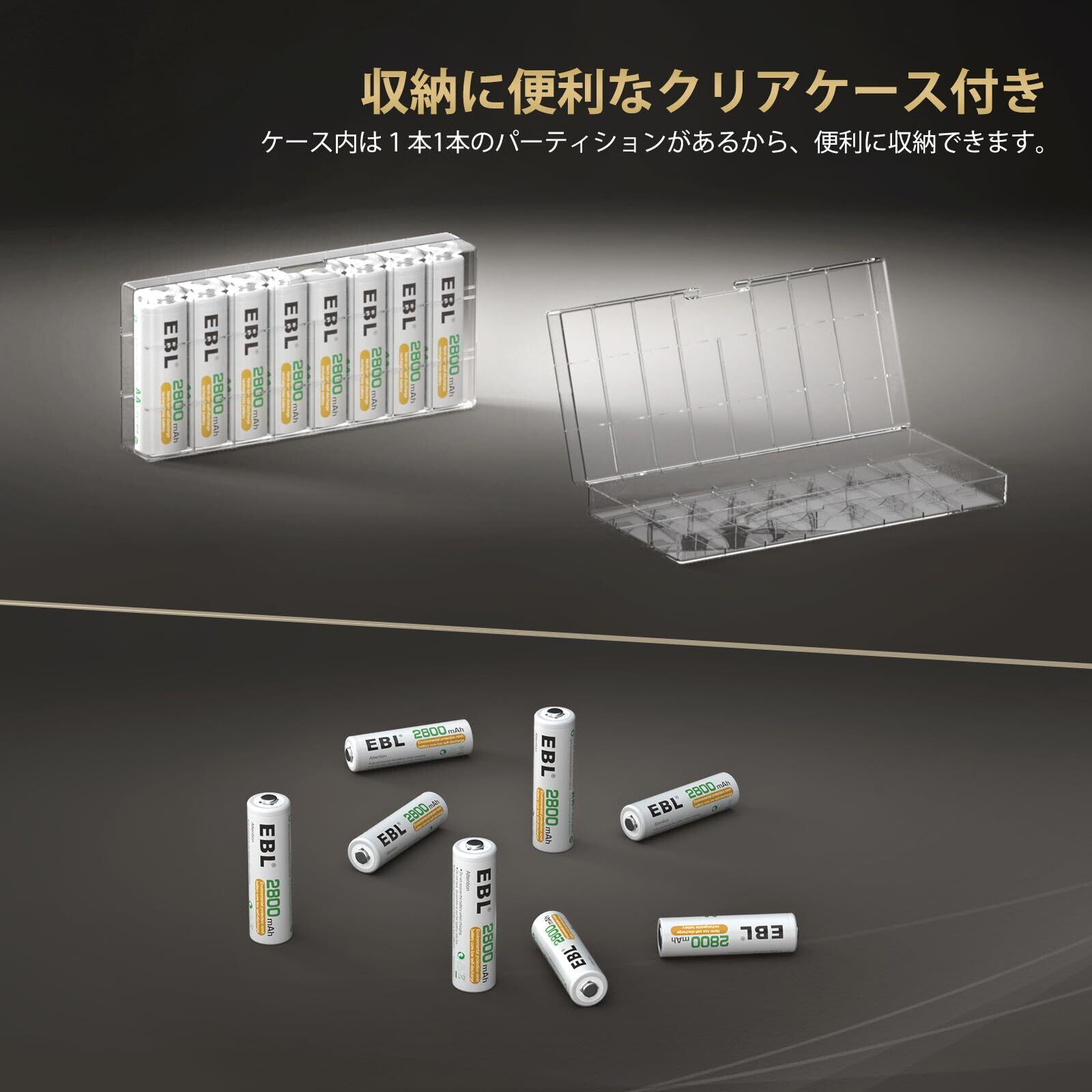 EBL 単3電池 充電式 8個 パック ケース付き 2800mAh ニッケル水素充電 単三電池 充電池 単3 単3充電池 単三充電池