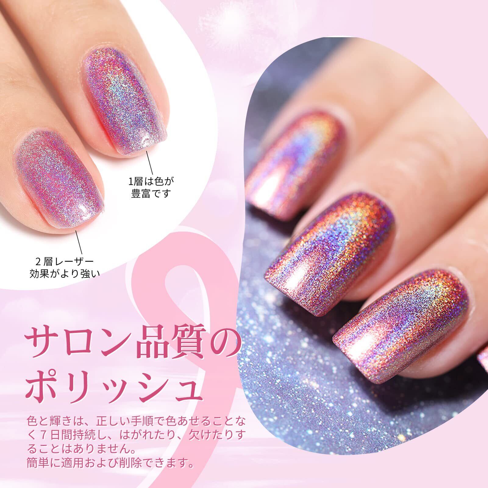 BORN PRETTY ユニコーンマニキュア キラキララメポリッシュ 微粒子ラメ ホロ 眩しい虹色 レーザーグリッター マニキュア ネイルポリッシュ ピンク