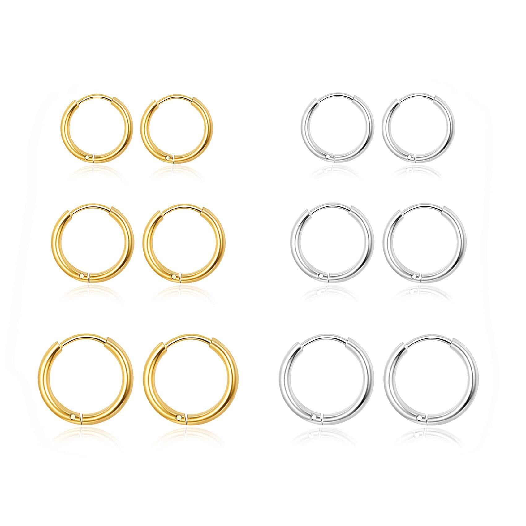 Senteria フープピアス リング ゴールド、シルバー メンズ レディース 両耳用 サージカルステンレス イヤリング セット 金属アレルギー対応 シンプル 人気 6ペア(サイズ8mm-12mm、幅2mm)