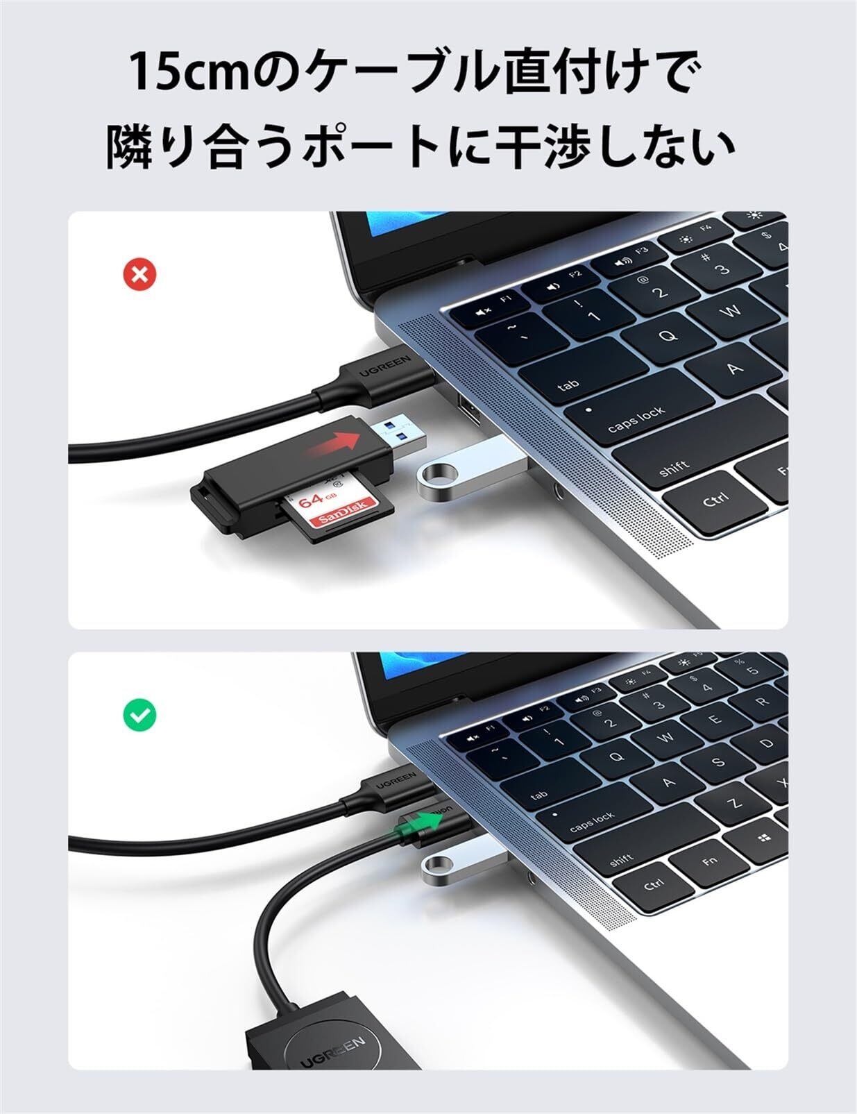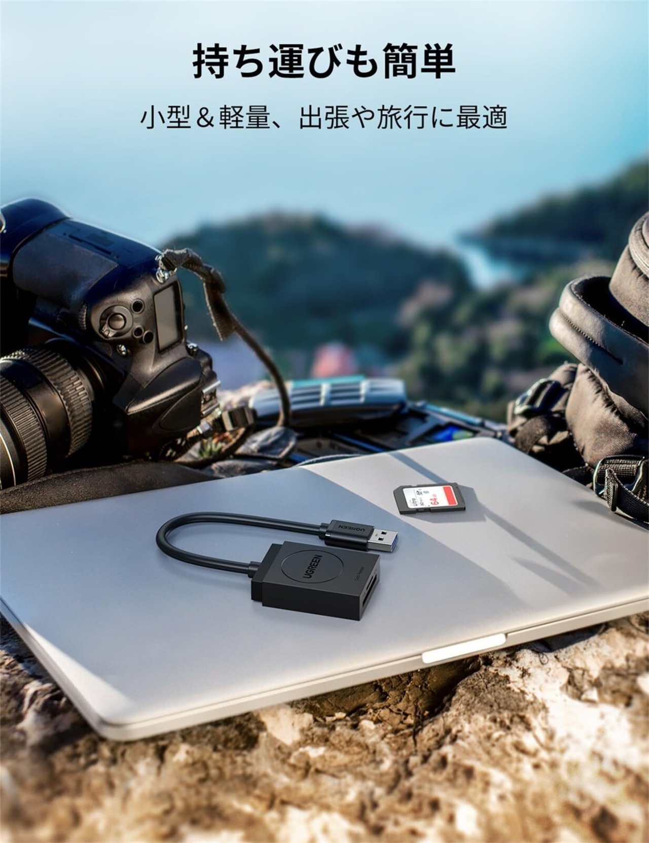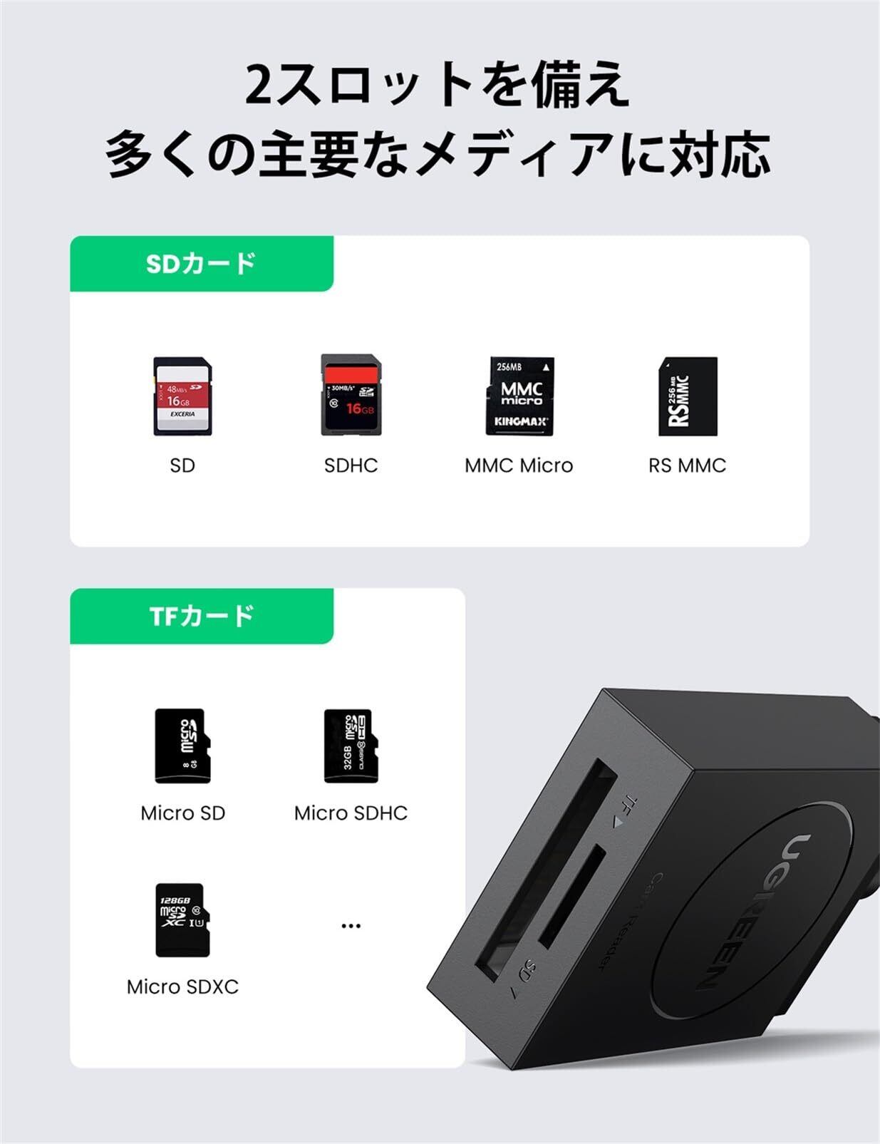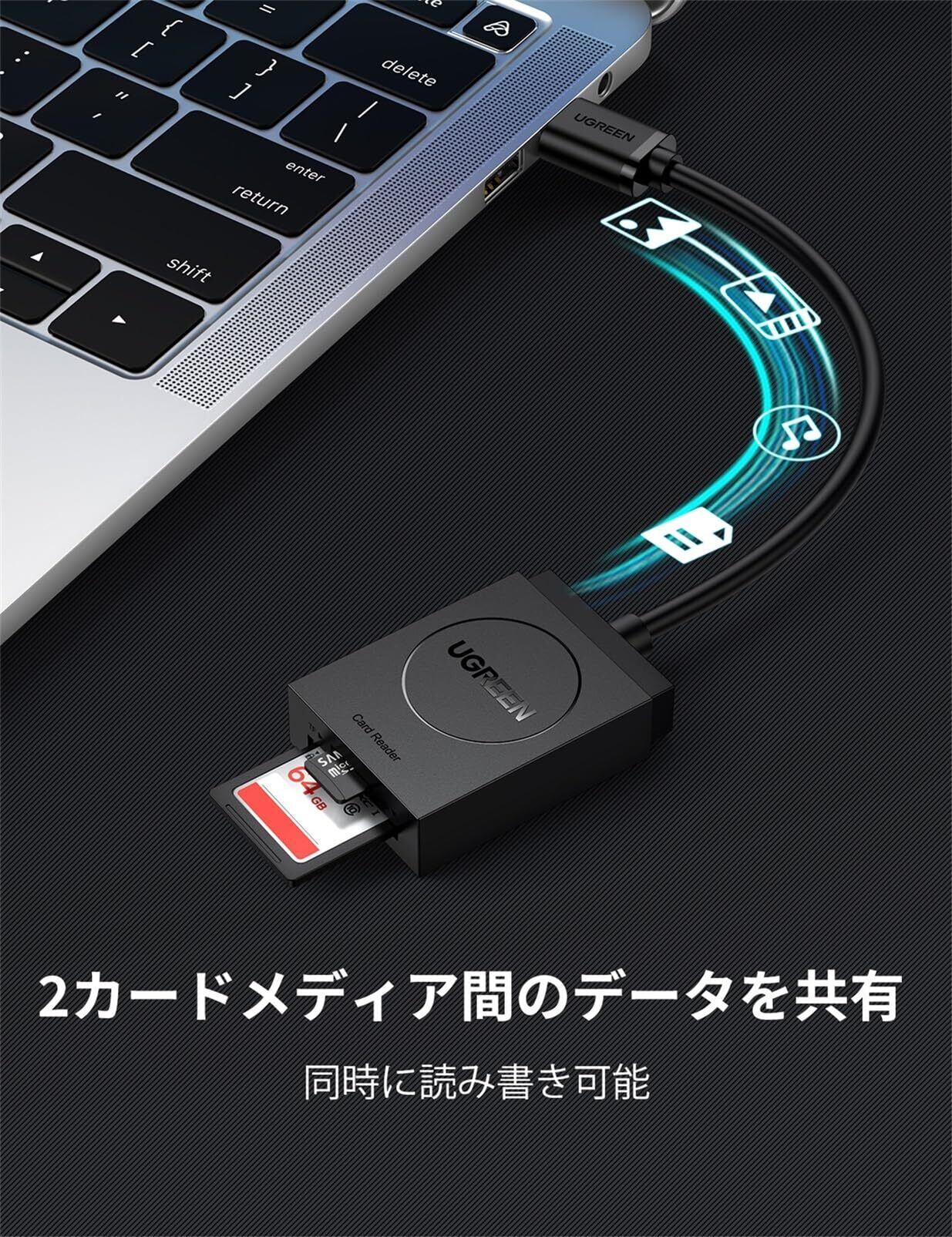 UGREEN カードリーダー USB 3.0 高速 SD TF カードリーダライタ 2スロットカード同時読み書き可能