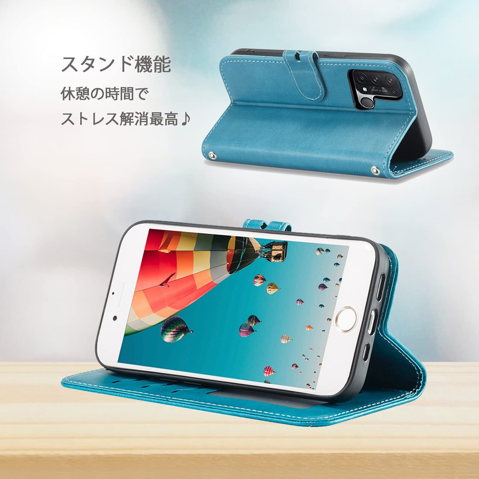 OPPO Reno5 A ケース 手帳型 Reno5A ケース おっぽ りの5aケース オッポリノ5a カバー oppo reno5a手帳型ケース スマートフォン用手帳型ケース 携帯ケース スマイル 笑顔猫ちゃん 猫柄 携帯カバー ストラップ付き カード収納 ベルトマグネット スタンド機能 薄型 男女兼用 (OPPO Reno5 A対応) ターコイズ