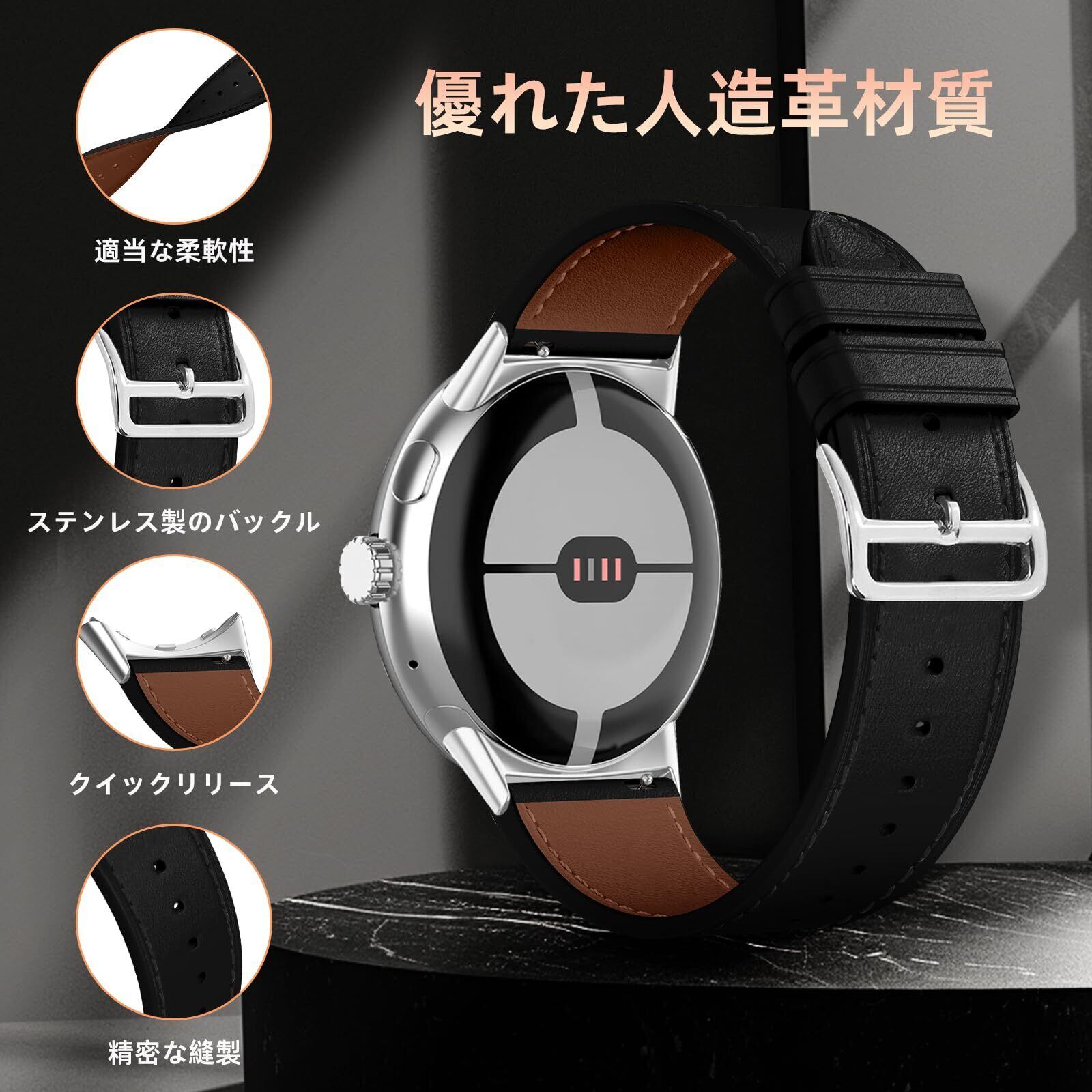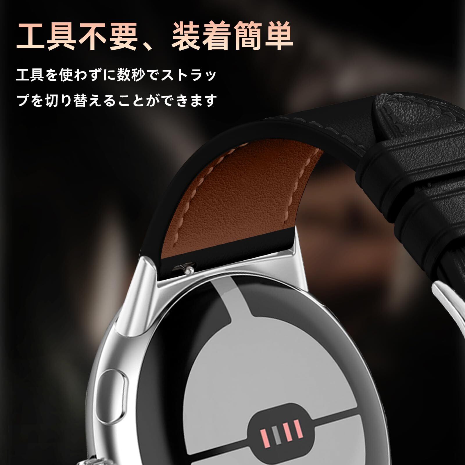 [RanBluu] バンド Google Pixel Watch 3 45 mm 対応 レザーバンド グーグル ピクセル ウォッチ 替えベルト スマート換えバンド スマートウォッチバンド 革製ベルト レザー替えバンド ビジネスベルト クイックリリース 長さ調節可能 男女兼用 (Google Pixel Watch 3 45mm 対応 ブラック)