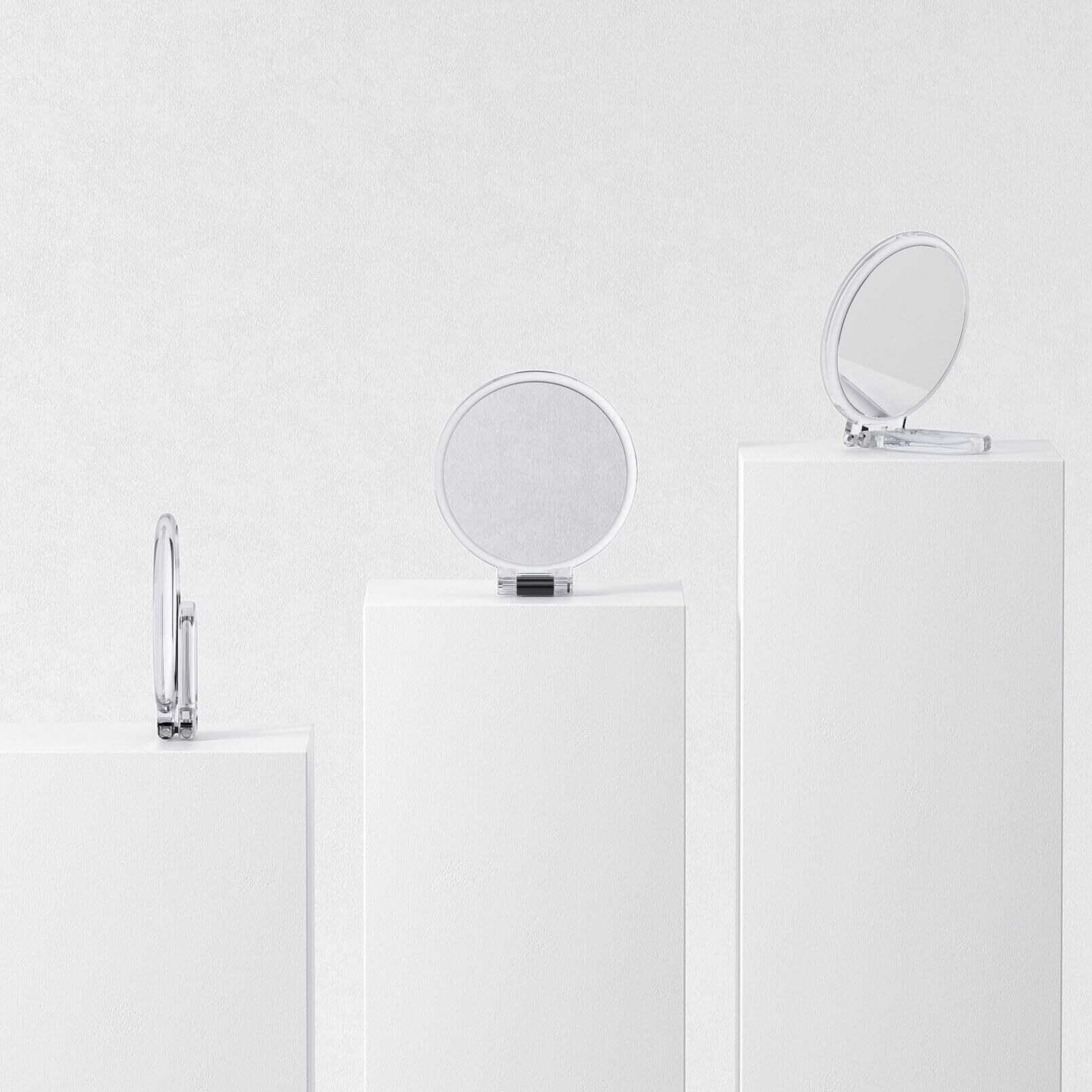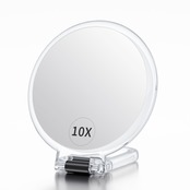 Beautifive 手鏡 拡大鏡 10倍 折りたたみ両面ハンドル付き化粧鏡 コンパクトミラー 10倍と等倍 卓上ミラー コンパクト 持ち運び便利 円形 13.7CM クリア