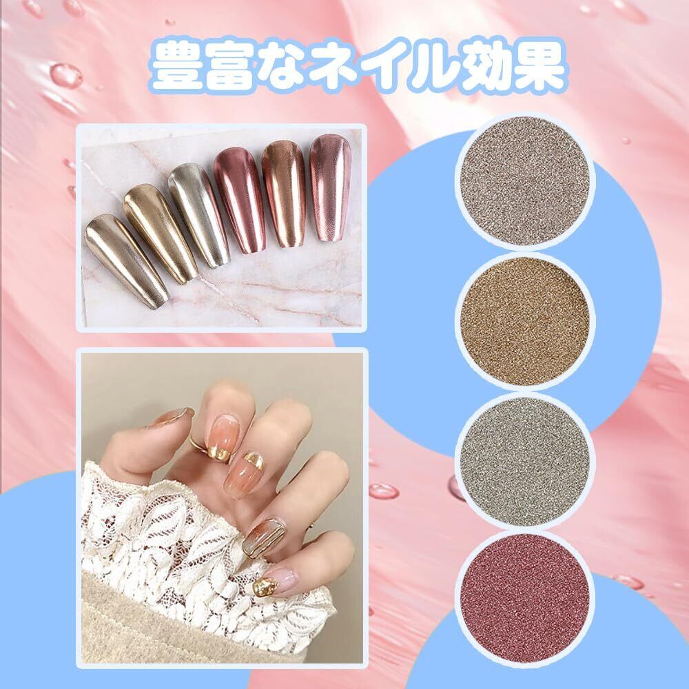 ユーザーフレンドリー性と安全性:本製品はその繊細な微粒子構造で初心者と専門家に愛されており、優れた技術を必要とせずに簡単に手に入れることができる。製品の材質は健康天然成分を選択し、爪に損害を与えない。正しく塗布すると、爪の鏡面パウダーが21日以上長持ちし、美しく色あせない。
