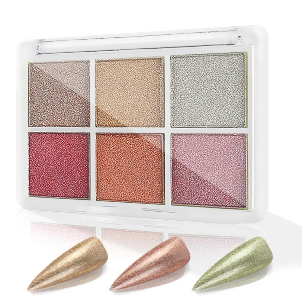 デザインと材質の特徴:このミラーパウダートレイには6種類の精選色のミラーパウダーが含まれており、それらは1つの金属質感のトレイの中に集合し、色が鮮やかで美しく、爪の表面に塗ると鏡のような光沢と独特の金属質感を呈し、ネイルに高級感とファッションの雰囲気を加えることができる。