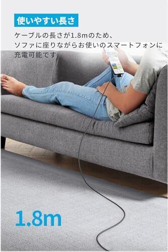 使いやすい長さ:ケーブルの長さが1.8mのため、ソファに座りながらお使いのスマートフォンに充電可能です。
