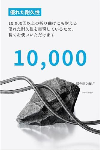 優れた耐久性:10,000回以上の折り曲げ (Anker調べ) にも耐える優れた耐久性を実現しているため、ケーブル内部のワイヤーを断線から保護し、長くお使いいただけます。