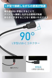 L字型で接続しながらの使用が快適:端子部分をL字型にすることで、デバイスへ接続しながらの使用が快適になり、持ち手に干渉することなく使用いただけます。