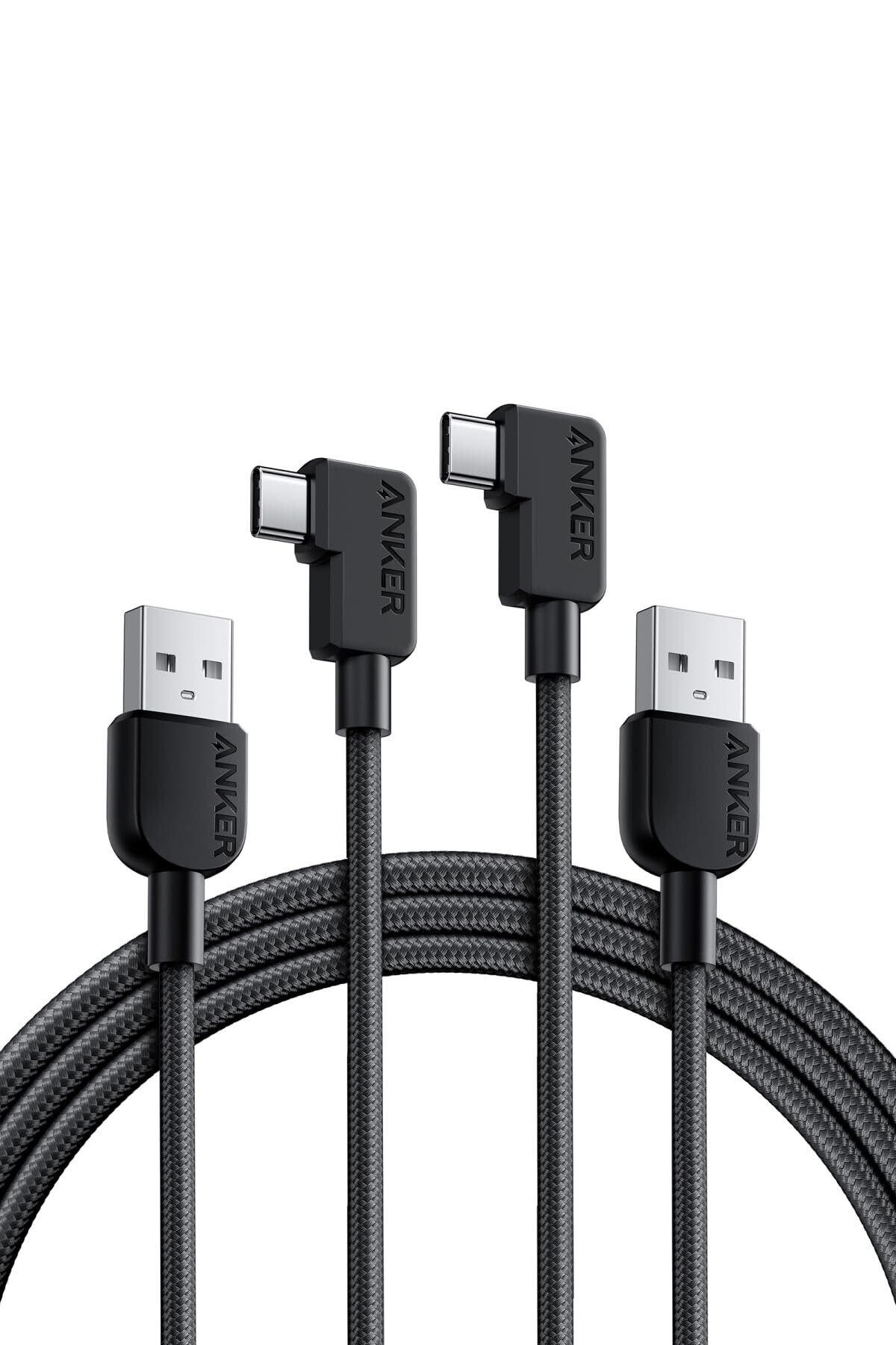 Anker USB-C & USB-A ケーブル (L字, 高耐久ナイロン) 1.8m 15W USB PD対応 iPhone 16 / 15 Galaxy Pixel LG 他対応 (2本 ブラック)