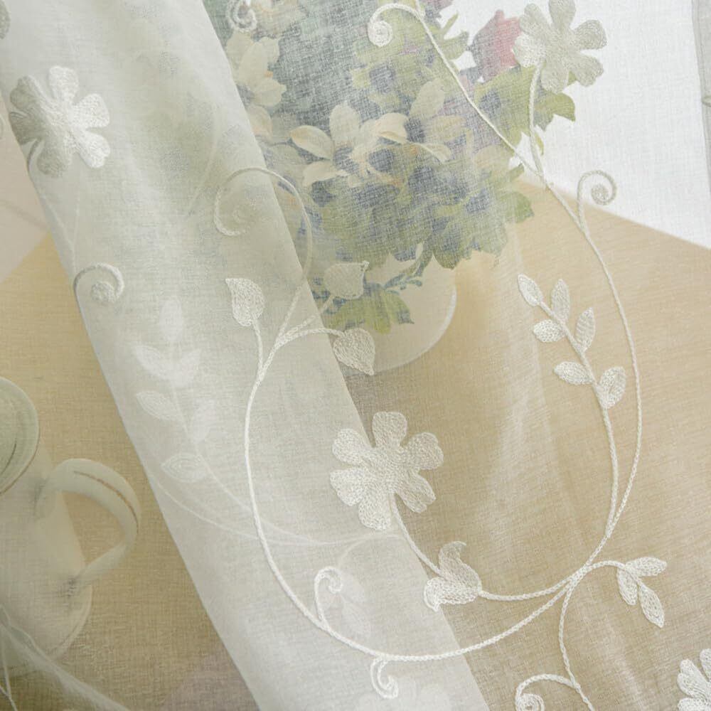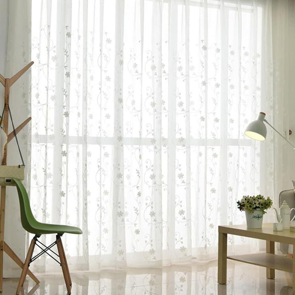 唯美 刺繍 花柄 葉柄レースカーテン2枚組 - 幅150x丈230 CM - 刺繍 透气 薄い 花葉 紗のカーテン 部屋 房间,オーダーサイズ可