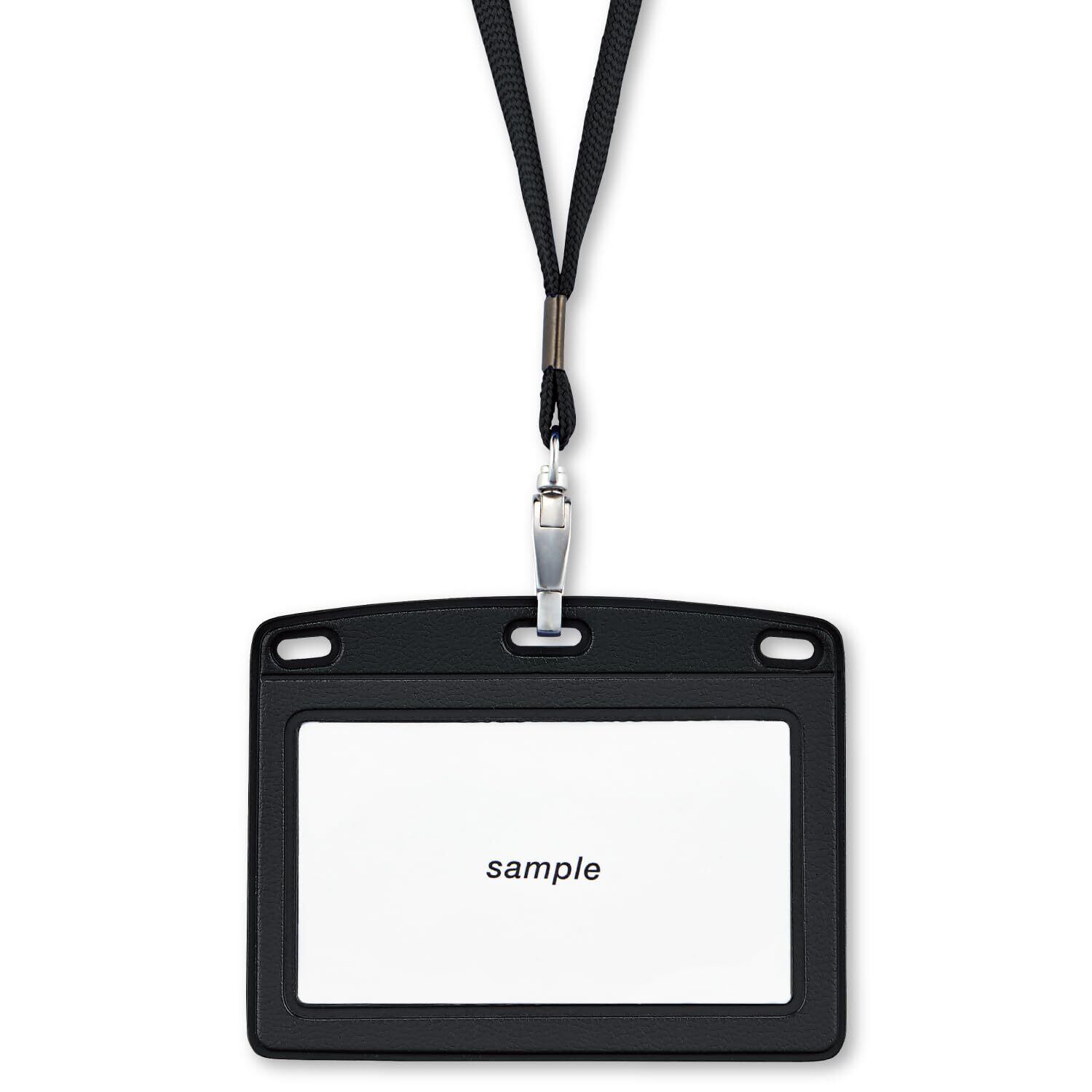 オープン工業 吊り下げ名札 ネームプレート 名札 ネームホルダー 名刺サイズ 1枚 レザー調 ヨコ ブラック 黒 N-123P-BK