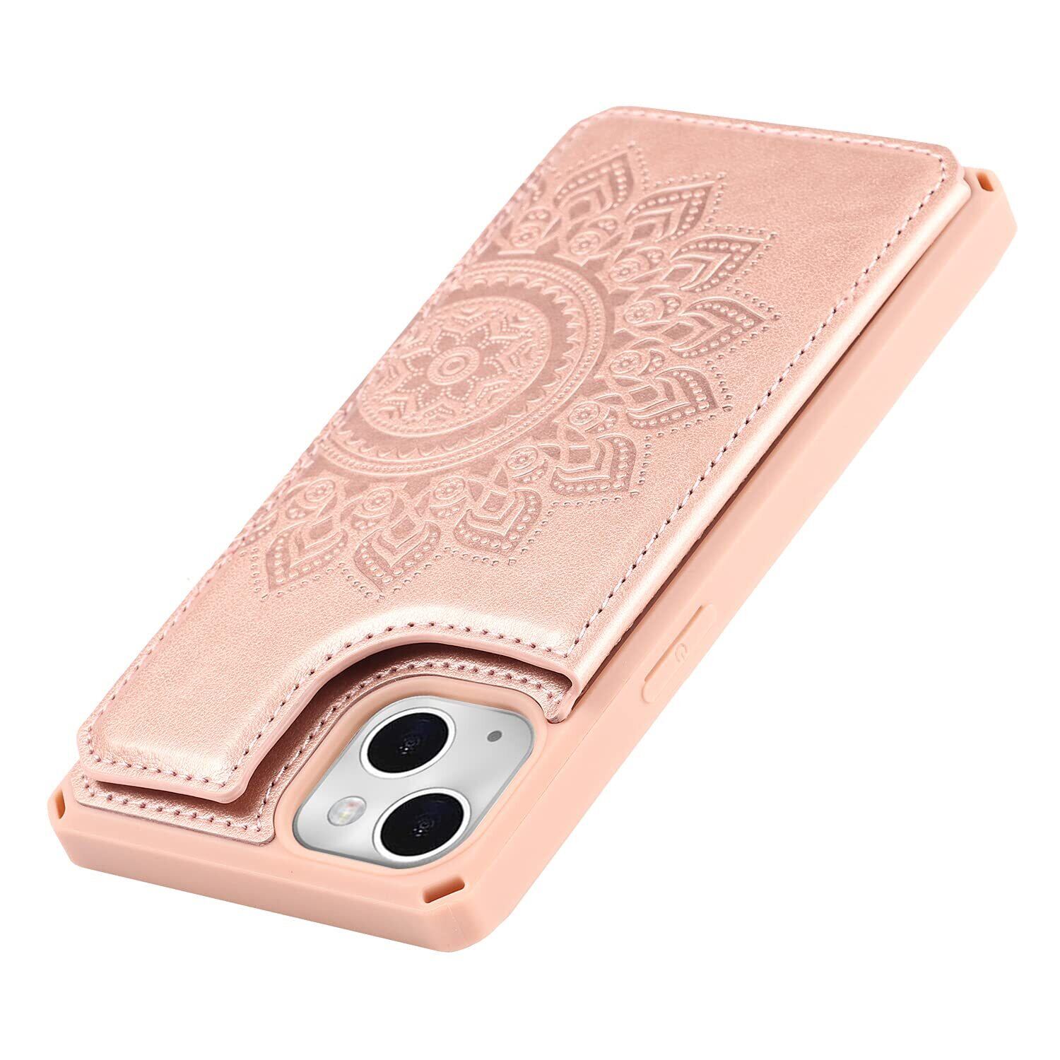 Pelanty for iPhone 13 ケース手帳型 iPhone13 ケース縄掛け スプラット同梱 背面カバー 花柄横開模様 PUレザー ICカード収納 軽量 スタンド機能 ボタン磁気 アイフォン13 スマホケース ストラップ 携帯カバー 耐衝撃 滑り防止 防塵 全面保護 [花柄横開-ピンク]
