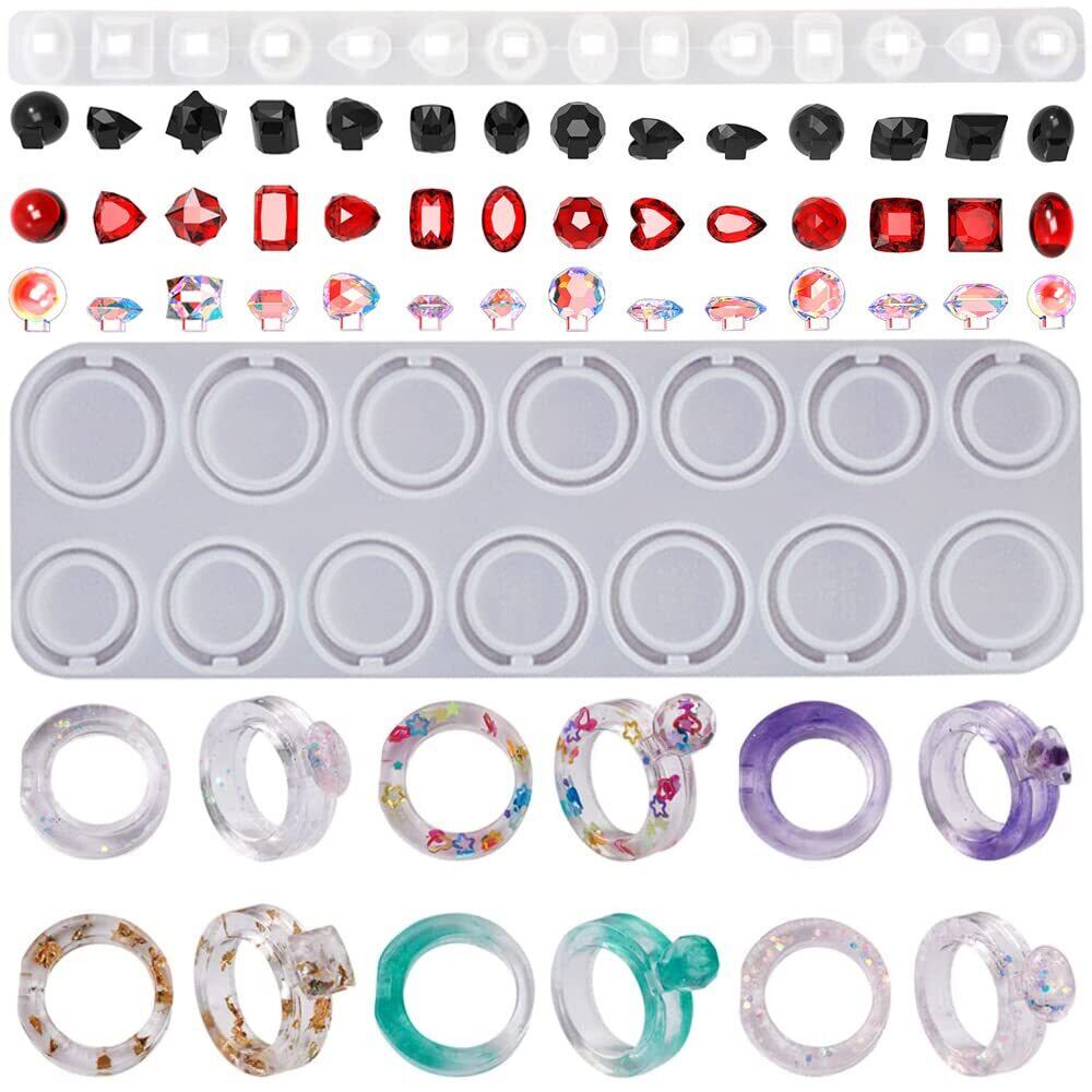 シリコンモールド 宝石 指輪 2個セット 樹脂 UVレジン型 ソフトモールド ダイヤモンド型 ジュエリー 3Dモールド DIY モデル 手作り 手芸 道具 宝石 ペンダント ネックレス ジュエリー アクセサリー 道具 創造性を最大限に発揮 再利用可能 レジンアクセサリー シリコン型 型抜き(指輪+宝石組み合)