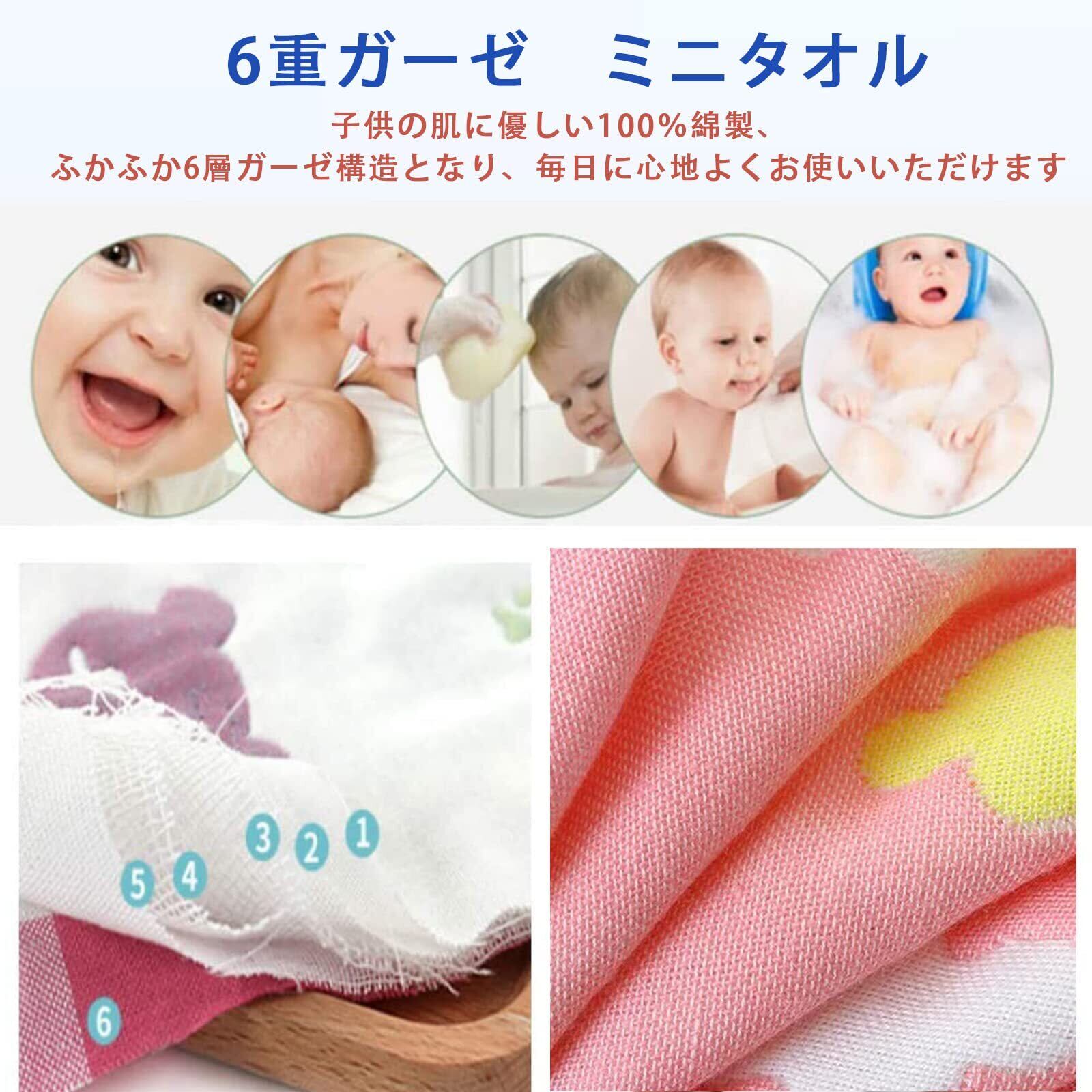 KKigugol ガーゼハンカチ 子供タオル 6層ガーゼおしぼり【6枚セット 綿100% サイズ25*25cm ミニ ハーフハンカチ 紐付き】子供 保育園 口拭き 手拭き 赤ちゃん ベビー出産祝い 女の子