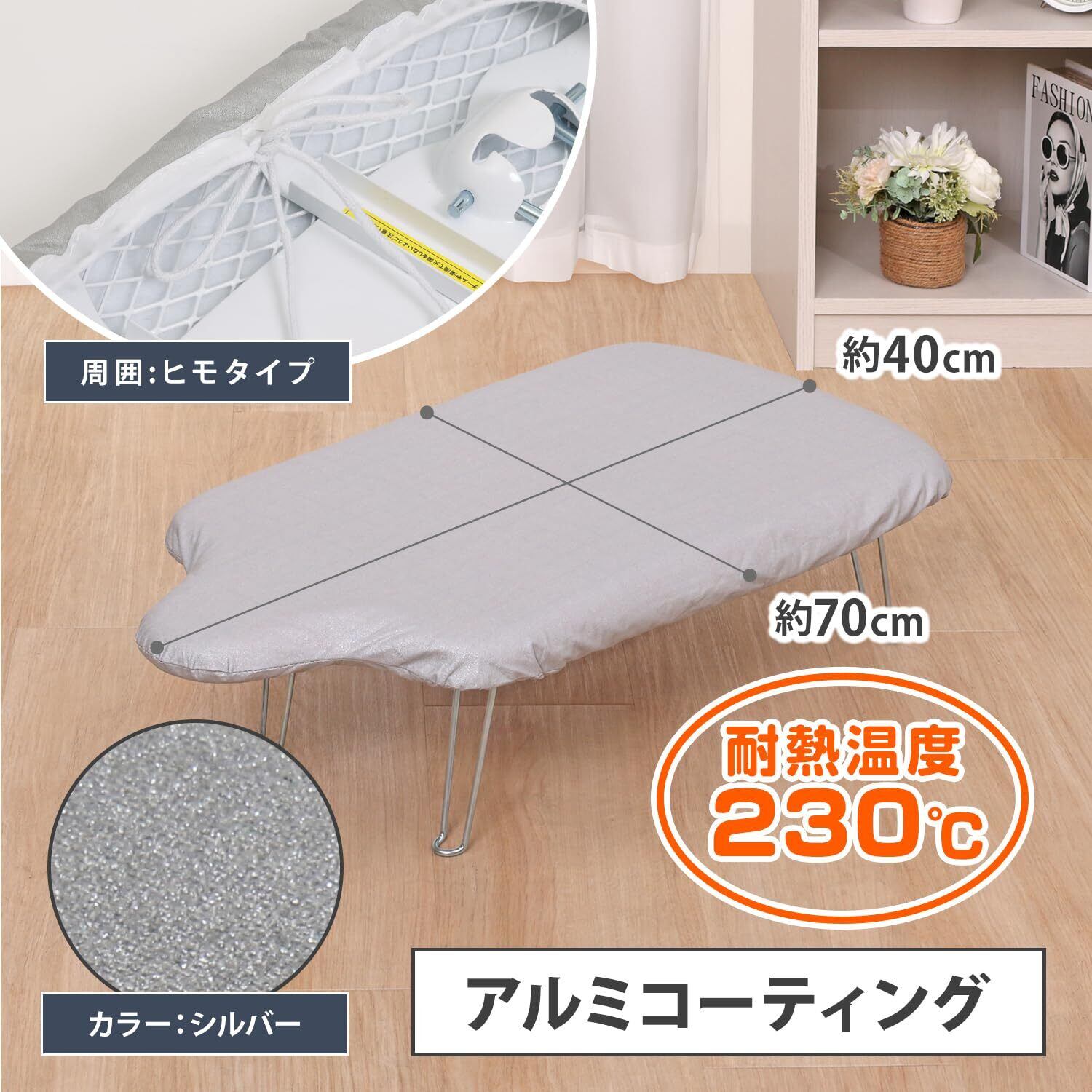 【商品仕様】:サイズ/約40×70cm、カラー/シルバー、内容/1枚、適応サイズ/約37×69cmの人型(人体型)のアイロン台、材質/綿(アルミコート)