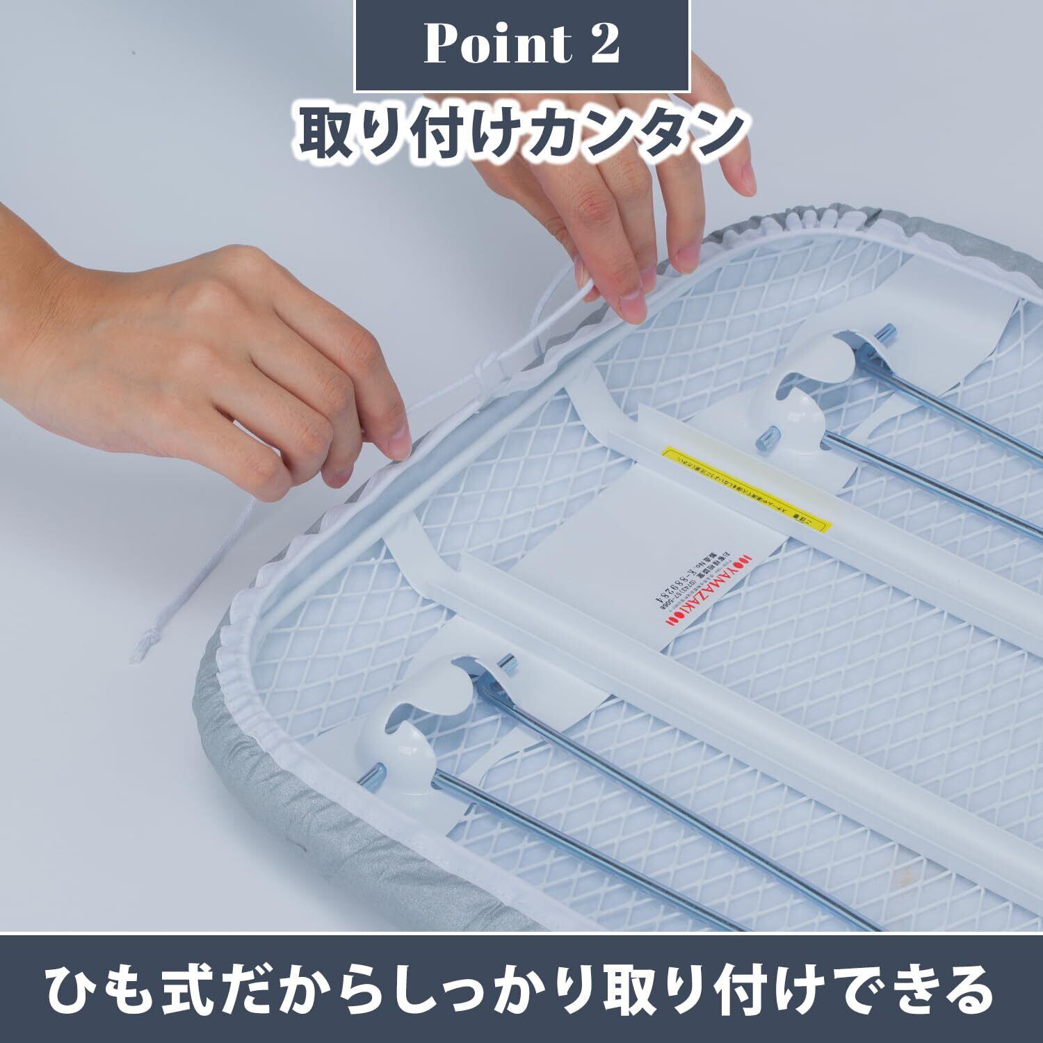 【ひもタイプでぴったりフィット】:ひもタイプなので、アイロン台の形に合わせてぴったりフィットさせて取り付け可能。
