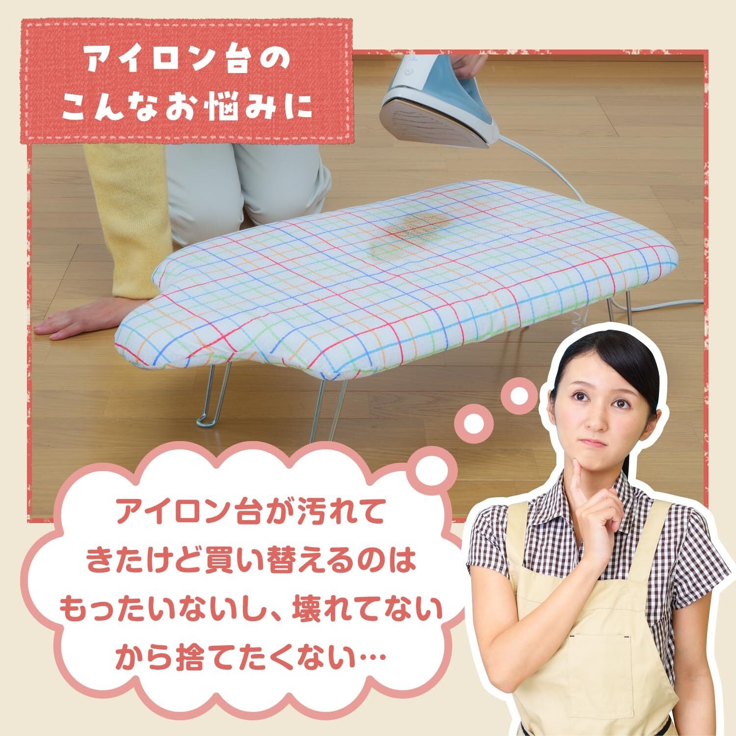 【被せるだけでアイロン台が復活】:古くなったアイロン台に取り付けるだけで、アイロン台をリフレッシュできるカバー。