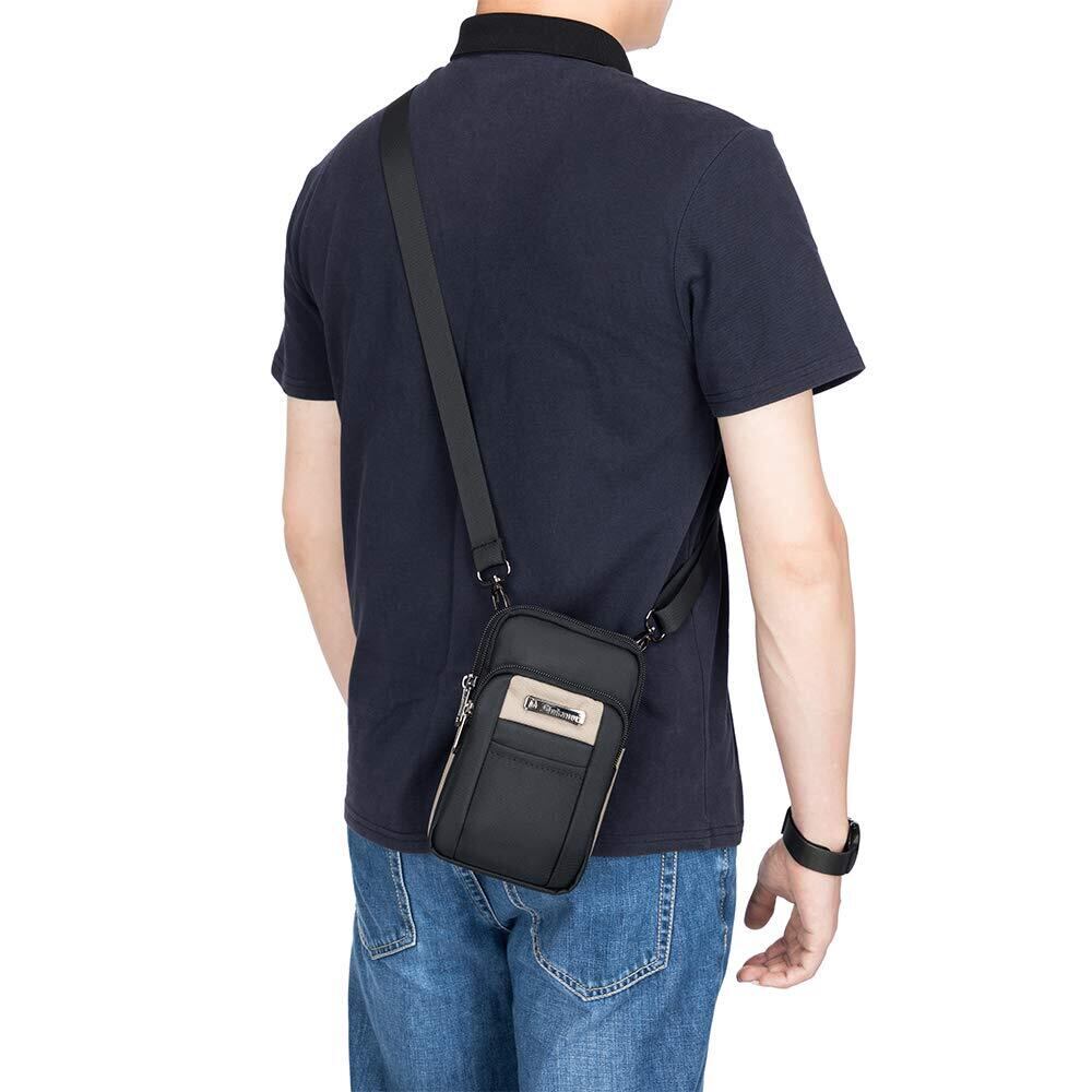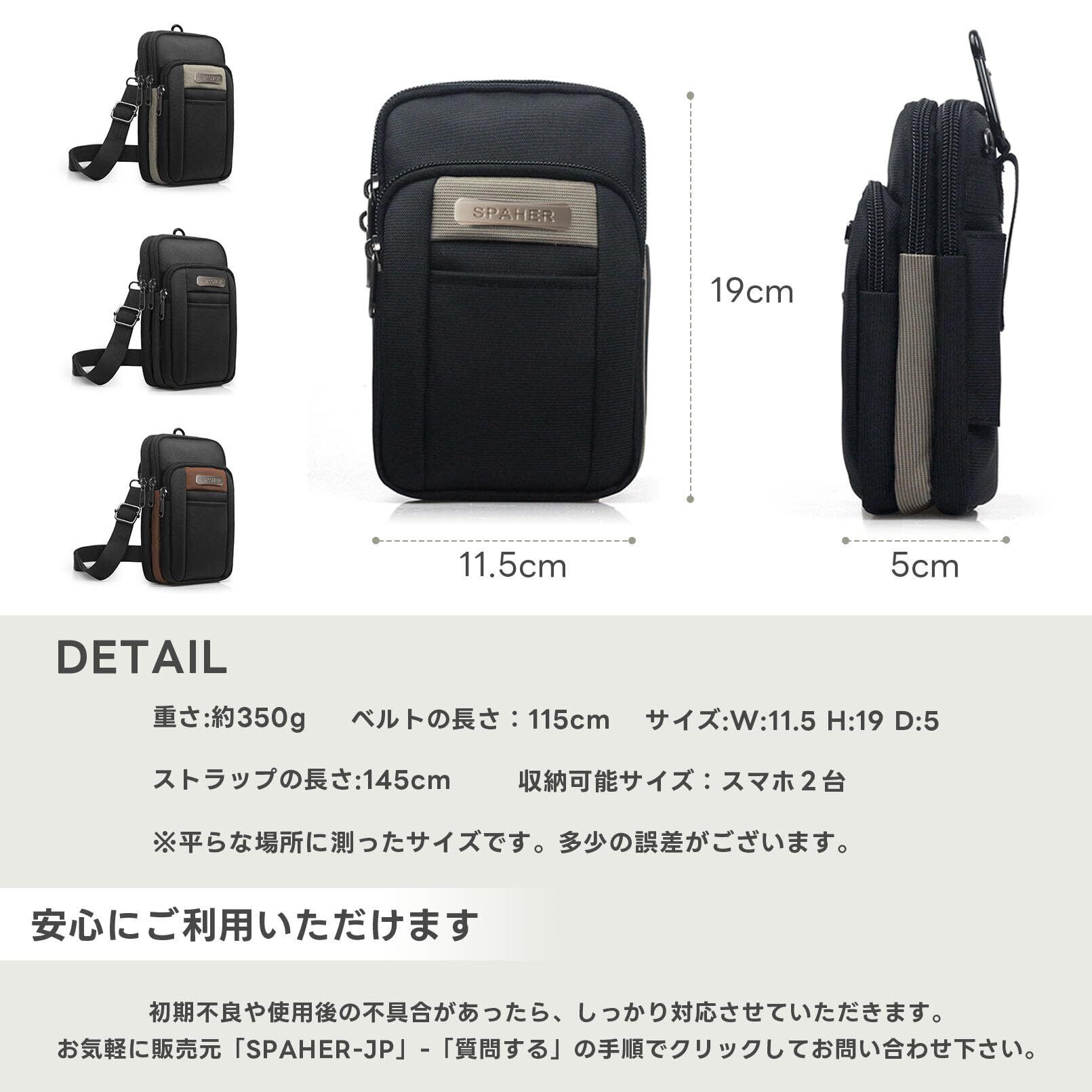[SPAHER] スマホポーチ メンズ ポーチ 小物入れ ウエストポーチ 防水 ベルトポーチ 小さめ マルチポーチ 旅行 アウトドア 登山 多機能収納 携帯 ガジェット ショルダーストラップ付き カラビナ付き 4層