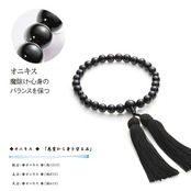 【数珠の特徴】: ◆オニキス ◆ 「悪霊から身を守る石」とされ、肉体の内側にある本能を目覚めさせ、運動能力を刺激して向上させる力があると伝えられています。また葬式や法事などフォーマルの場で違和感なくお持ち頂けるお数珠です。