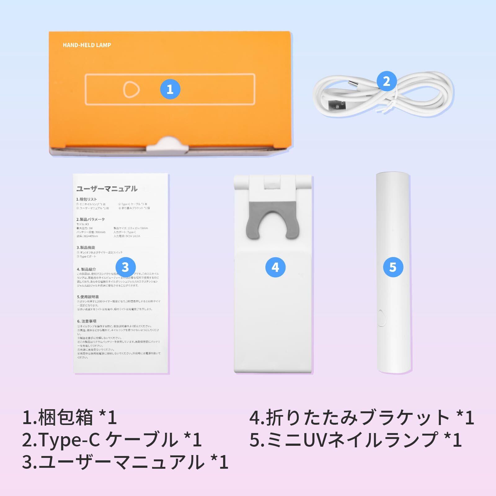 完璧な贈り物の選択肢:このUVネイルライトは、すべての種類のジェルネイルポリッシュを素早く硬化させます。絶対的にスペースの制限はありません。パッケージには、以下が含まれます:1*ハンドヘルドネイルライト、1*スタンド、1*USB充電ケーブル、1* 取扱説明書。硬化ライトは、女性の日、母の日、バレンタインデー、誕生日、記念日のために、母親、妻、娘、またはガールフレンドへの素晴らしい贈り物の選択肢でもあります。