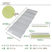 商品サイズ:約180×60×2cm、折りたたみサイズ:約15×12×60cm