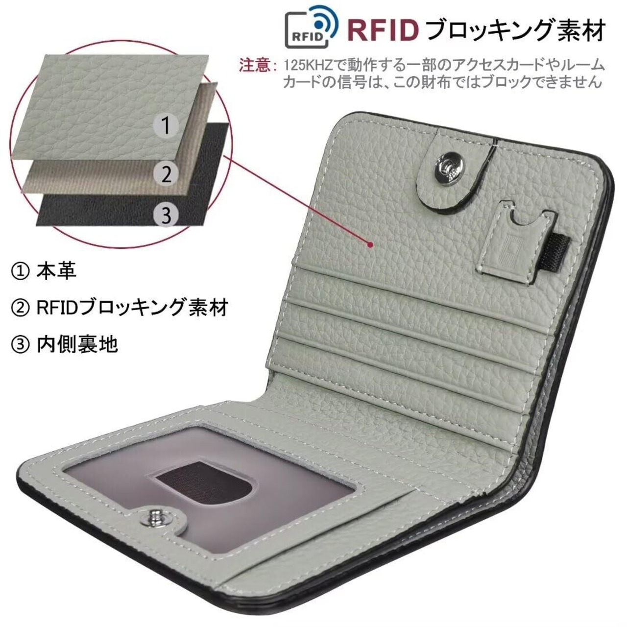 [GADIEMKENSD] レディース 2つ折り カードケース メンズ コンパクト軽い 折り畳み財布 薄いミニ 財布 かわいい お札入れ 小銭本革入れ RFIDブロッキング 旅行 ビジネス ライトグレー