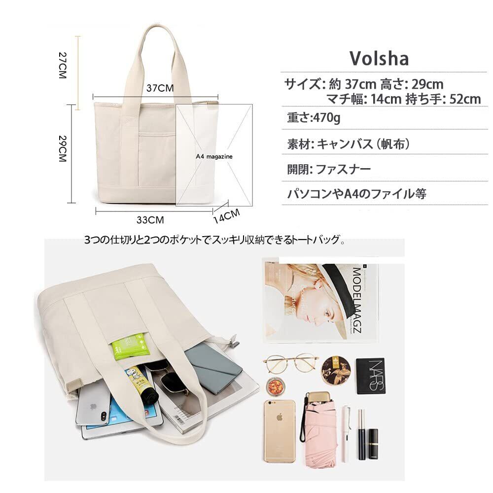 [Volsha] トートバック 仕切りトート キャンバス, A4 横 大容量 レディーストート キャンバス 無地 自立 キャンパストート帆布 通勤通学