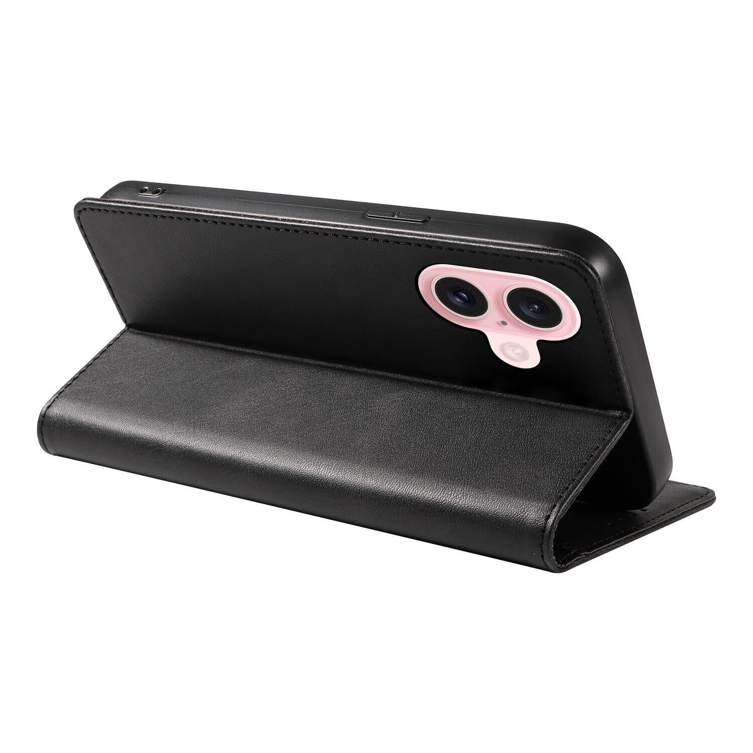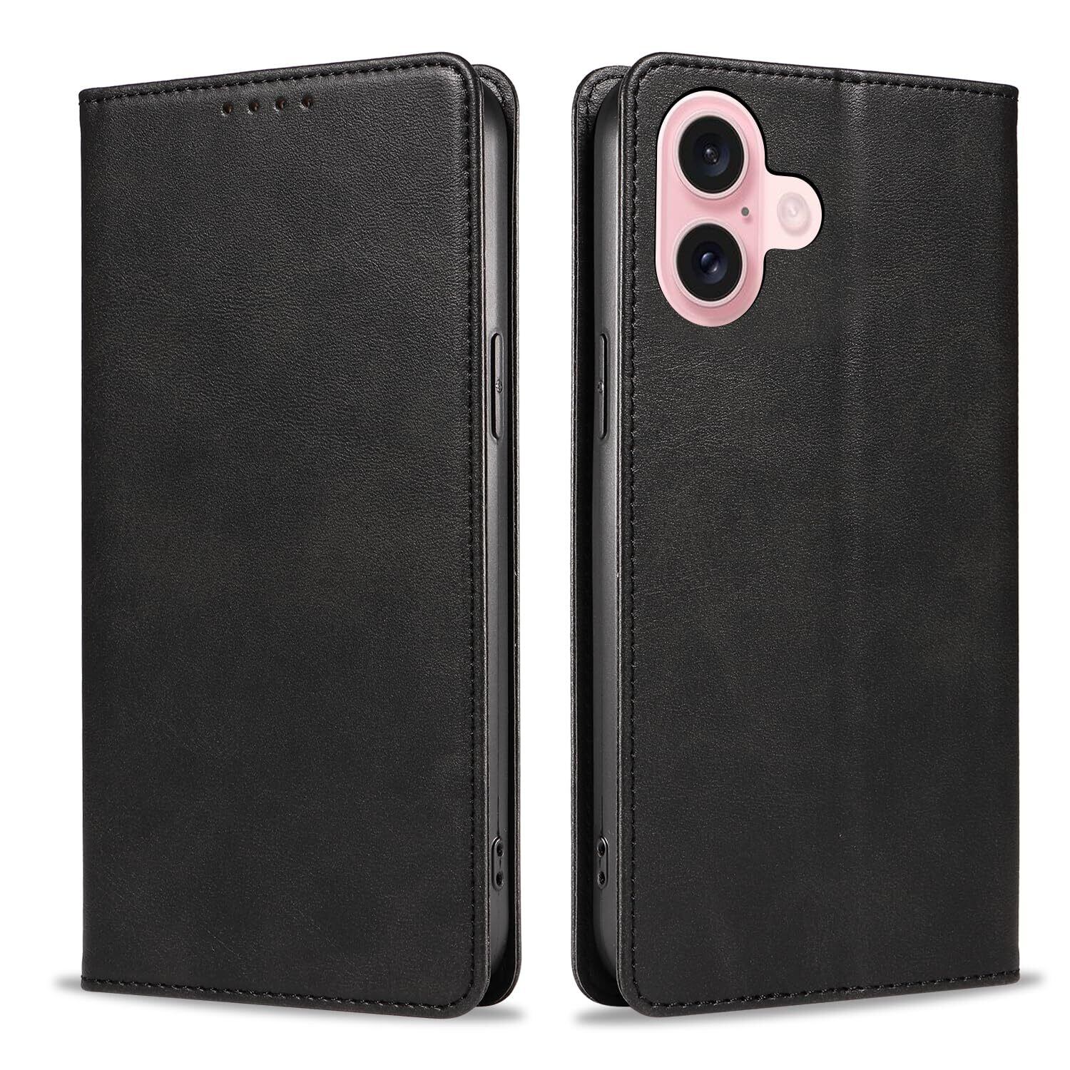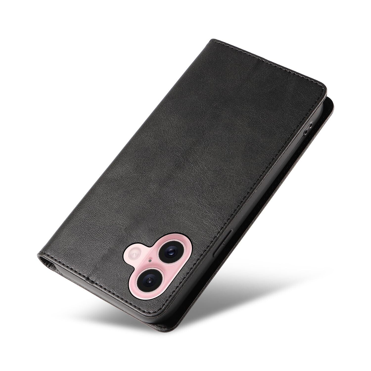iPhone 16 ケース いPhone16 ケース アイフォン16 ケース スマホケース 手帳型 携帯カバー レザー 耐衝撃 軽量 着脱しやすい 放熱性 マグネット式 カード収納 スタンド機能ケース16 対応 360度保護 PinLiSheng (ブラック iPhone 16)