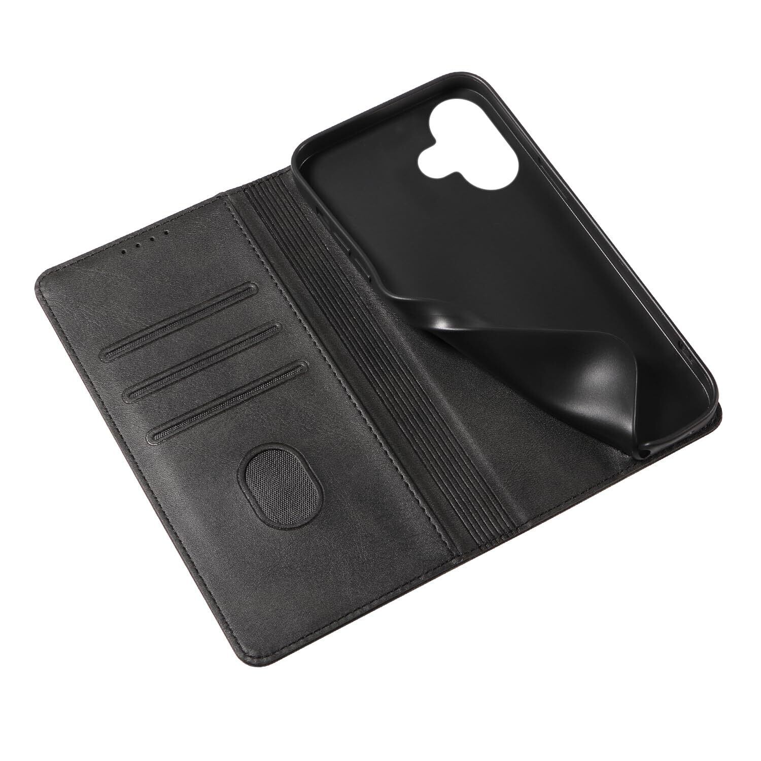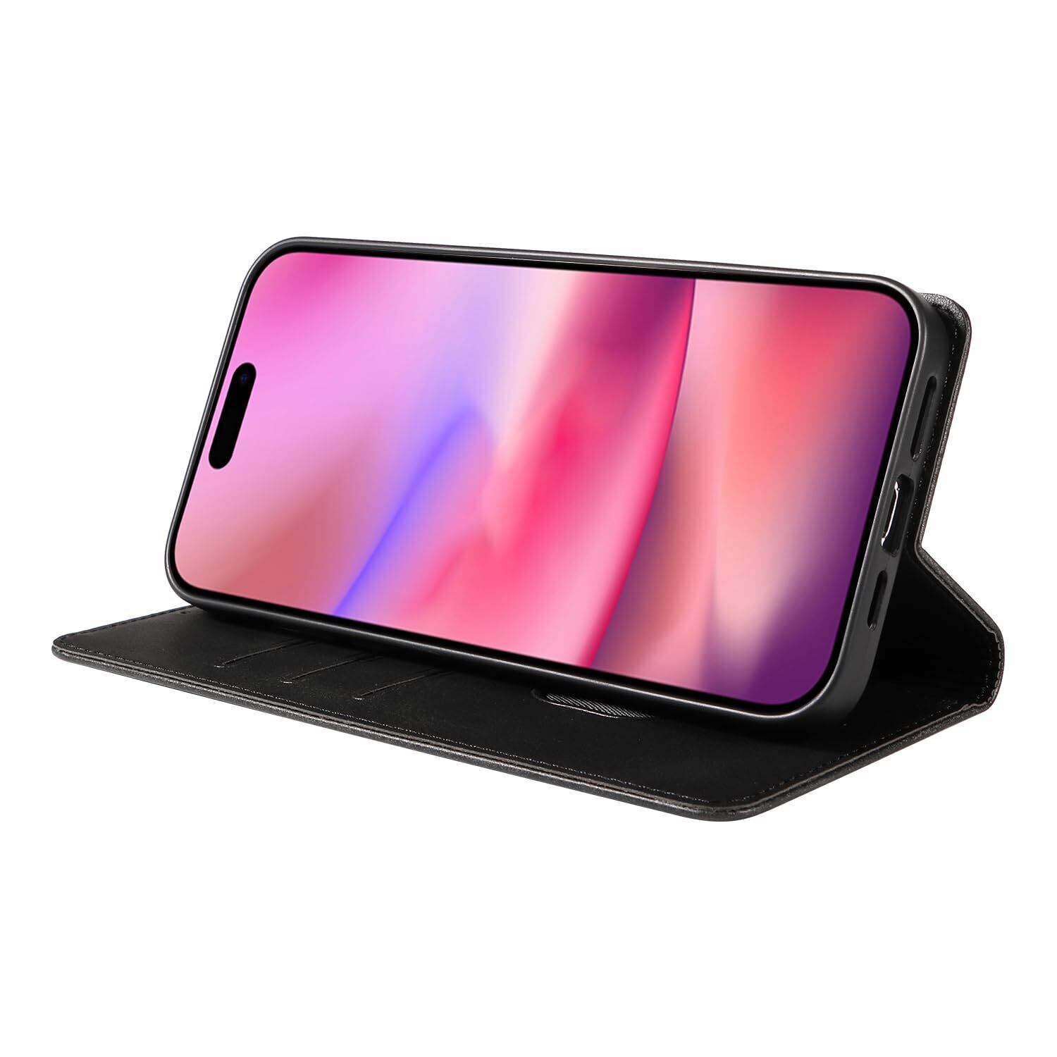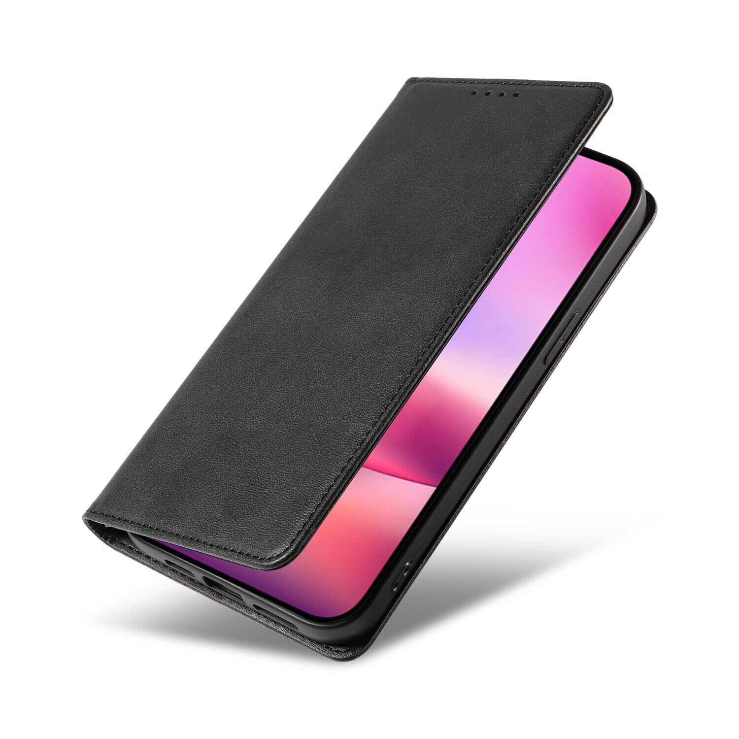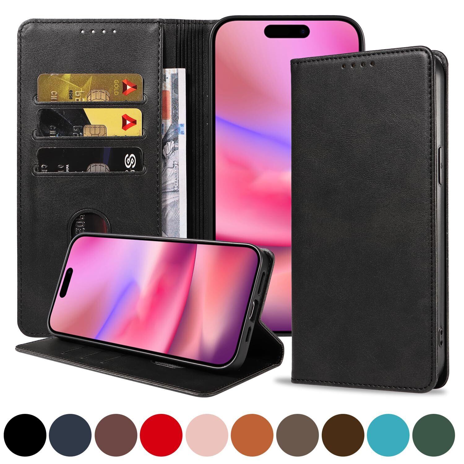 iPhone 16 ケース いPhone16 ケース アイフォン16 ケース スマホケース 手帳型 携帯カバー レザー 耐衝撃 軽量 着脱しやすい 放熱性 マグネット式 カード収納 スタンド機能ケース16 対応 360度保護 PinLiSheng (ブラック iPhone 16)