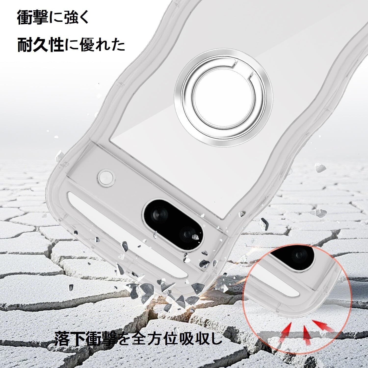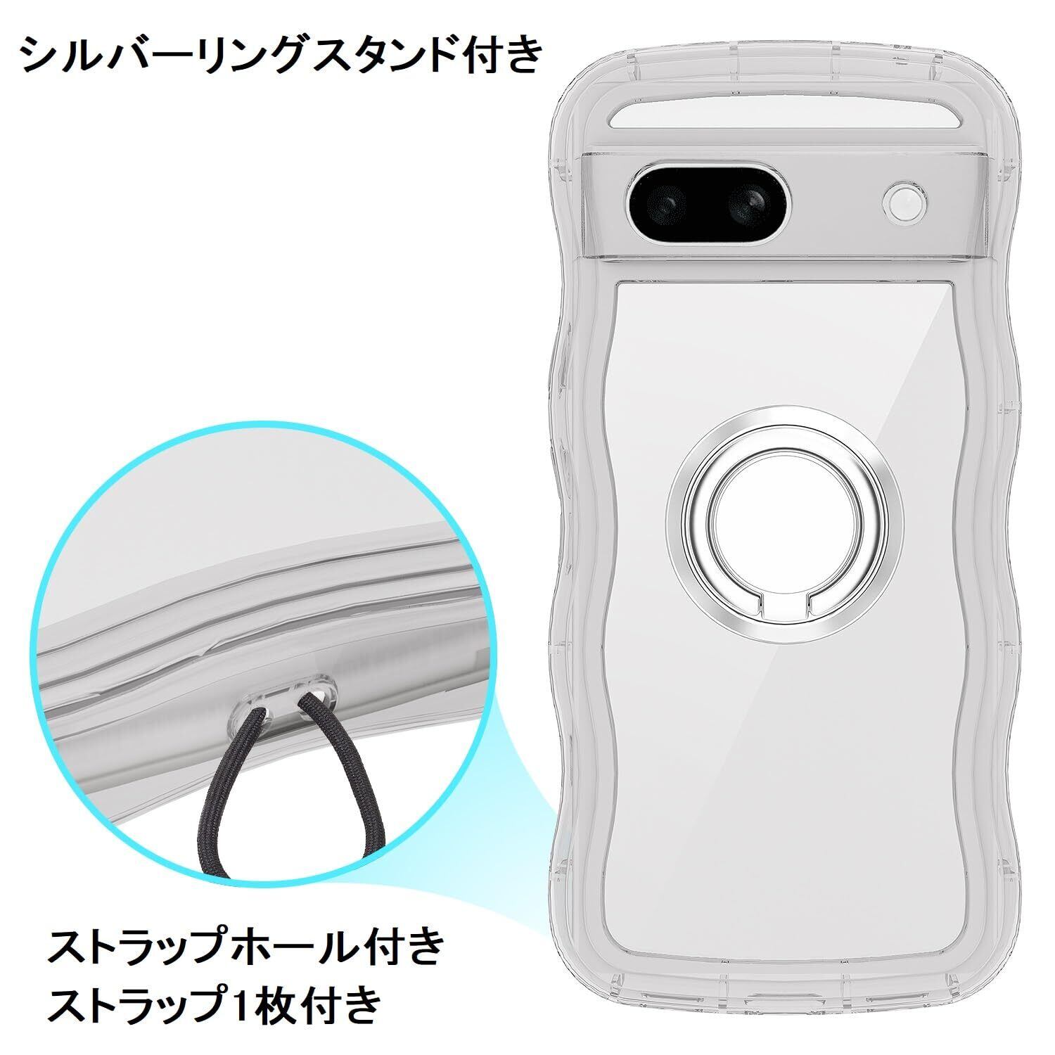 Google Pixel 9a用ケースクリア リング付き グーグルピクセル 9aウェーブ 純透明 携帯ケース マグセフ 可愛い ケース [シルバーリングスタンド付き!]マツと感 TPU 耐衝撃 超軽量 極薄 透明 黄ばみなし 滑り止め スマホケース pixel9aかわいいうねうね 韓国 人気 ワイヤレス充電対応 ストラップホール付きなみなみ カバー・ピクセル 9aクリア