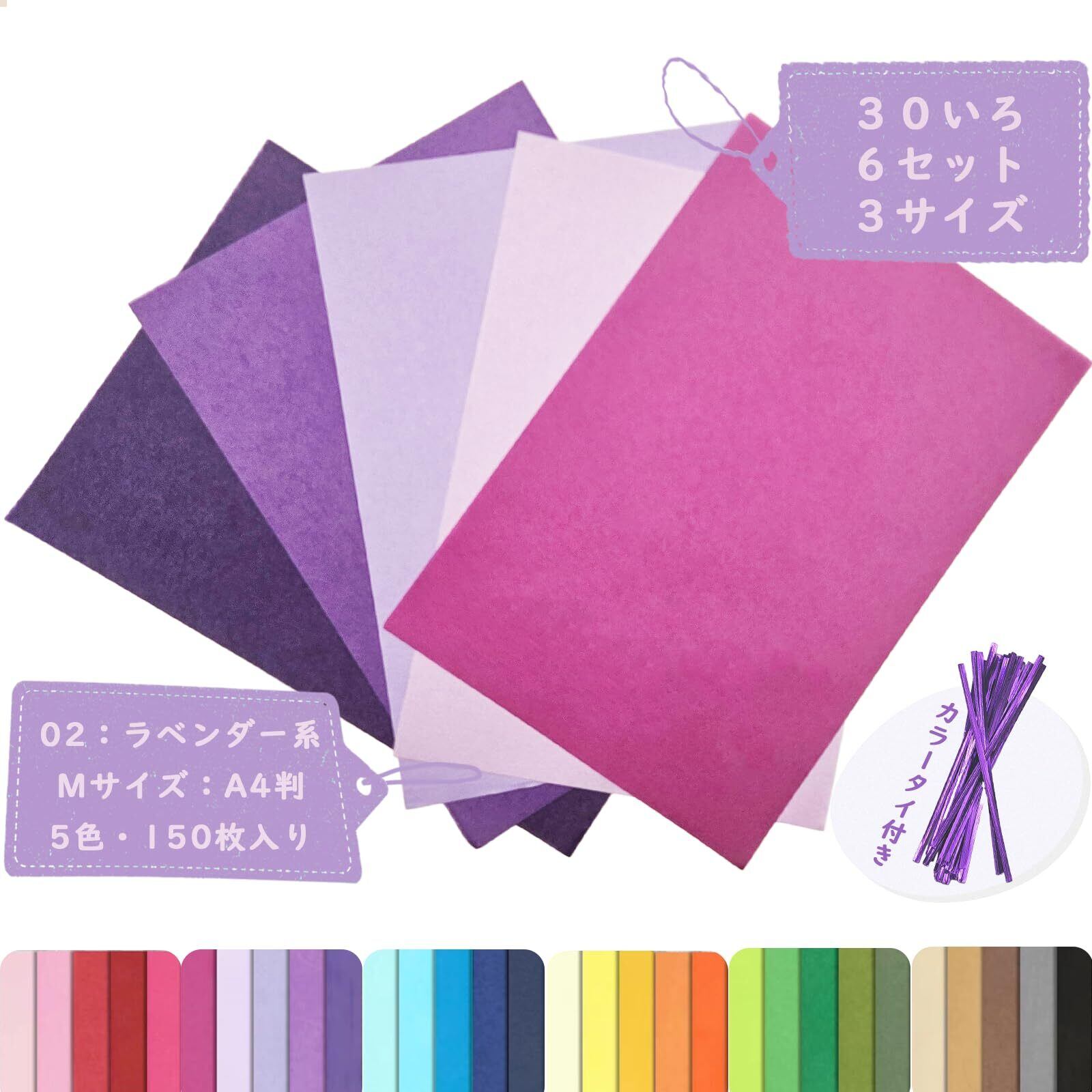 お花紙 ラッピングペーパー 【3サイズ・7セット・30色展開】 花紙 薄葉紙 おはながみ グラシン紙 フラワーペーパー 花束 包装紙 (02:ラベンダー系, Mサイズ:A4判)