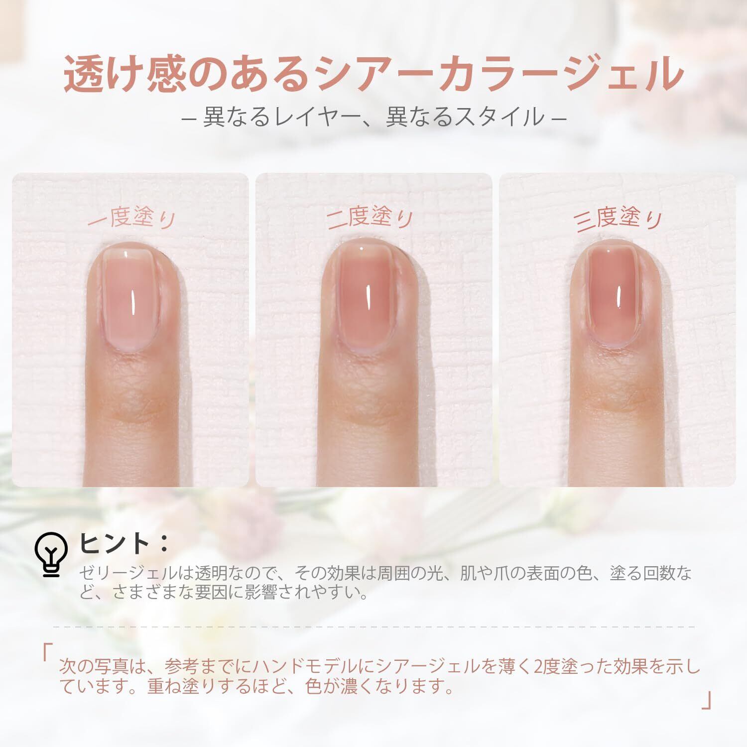4週間長持ち: ベースジェルを塗る前に爪の表面をなめらかに整えると、良いテクスチャーを作ります。カラージェルの後にトップジェルを塗ると、 みずみずしい光沢のある仕上がりになります。