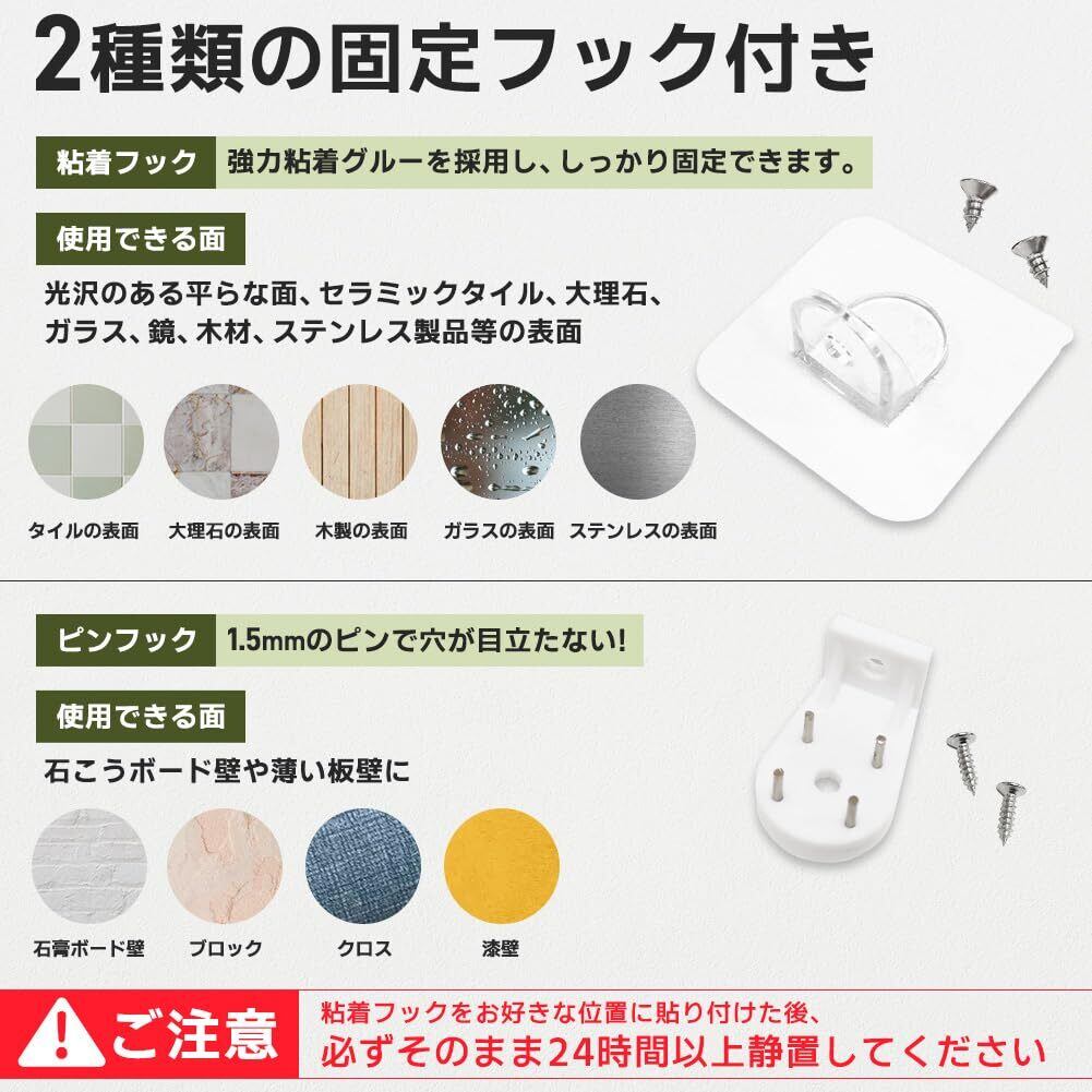 【取付・取外し簡単】簡単に組立&設置できますので、誰でも取り付け可能。また、壁に跡が残りにくい固定ピンと粘着フックを付属し、持ち家はもちろん、賃貸でも設置しやすいです。