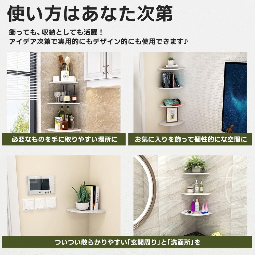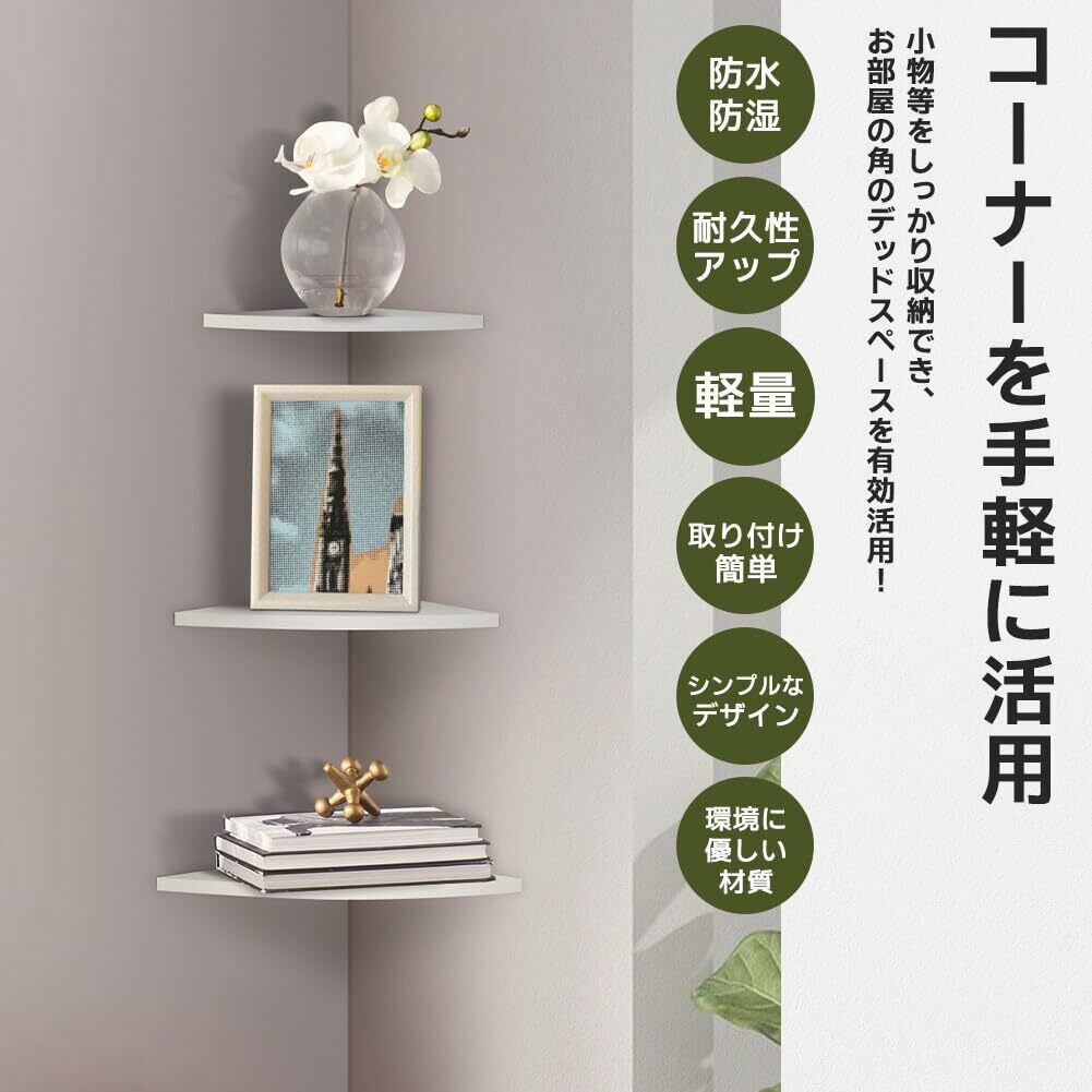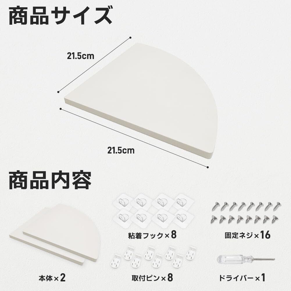 コーナーシェルフ 2枚セット 壁掛け ラック ウォールラック コーナーラック シェルフ 角 コーナー 飾り棚 壁掛け棚 壁面収納 便利グッズ 賃貸 取付簡単 Corner shelf 壁面ラック 棚収納 (ホワイト)