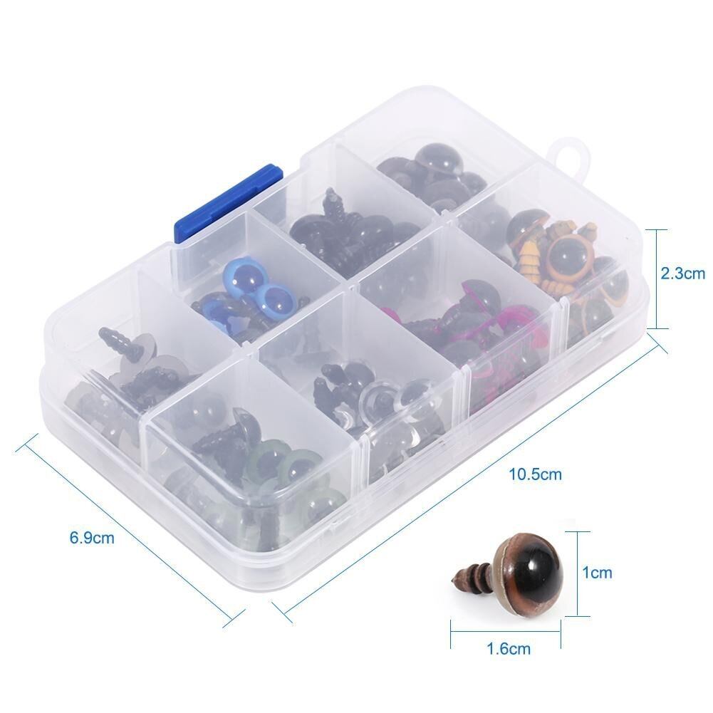 ✩【8色入り】10mm、8色、各色10個でぬいぐるみに必要なぬいぐるみ目は全部揃っています。いろんな色と十分な量があるのでご自由に使用できます。プラスチック製の収納ボックスが付いておるから、色んな目玉をちゃんと収めています。そんなに多くの目玉がばらばらに散らばることを心配せず、ご安心に使用してください。