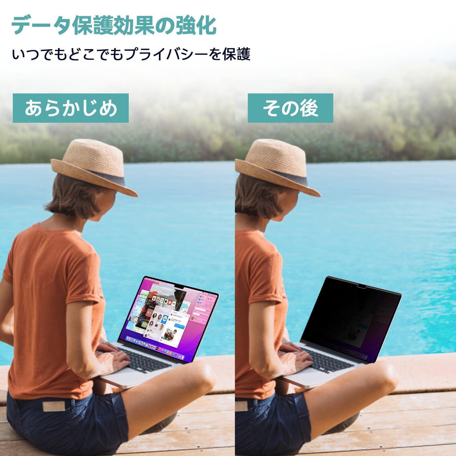 【のぞき見防止でプライバシーを守る】MacBook 13.6保護フィルム、正面から見ると高精細な鮮明度で、横からは見えません。磁気カメラカバーも装備されており、あらゆる面でプライバシーを保護します。MacBook air 13.6覗き見防止保護フィルムが不要な場合は、付属の収納フォルダーに保管できます。