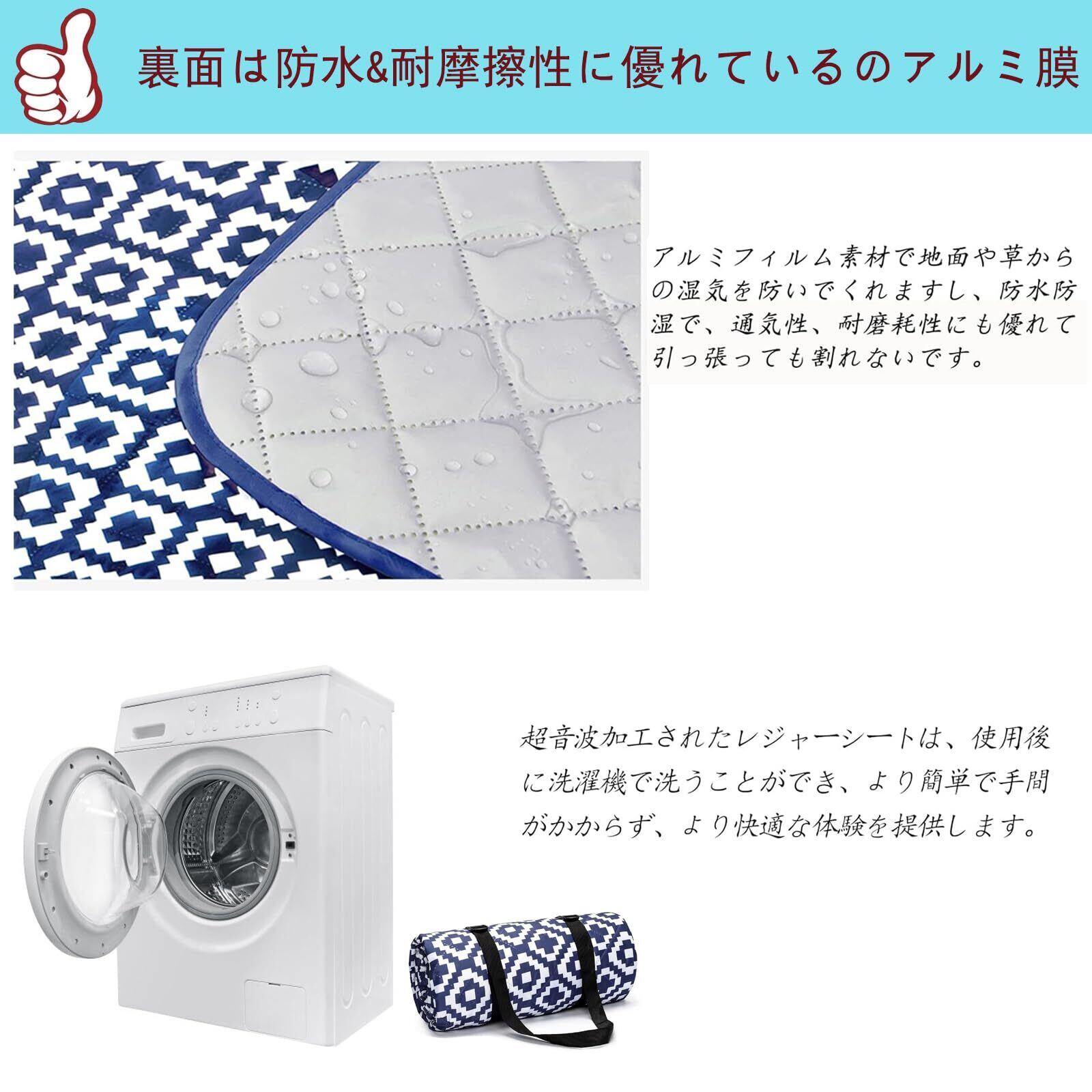 【完全洗濯可能なピクニックシート】:ピクニックシートは補強技術を使用し、各層が非常に丈夫で耐久性に優れています。大面積が汚れた場合、洗濯機で簡単に洗濯できます。何度も洗うと型が崩れしにくい!