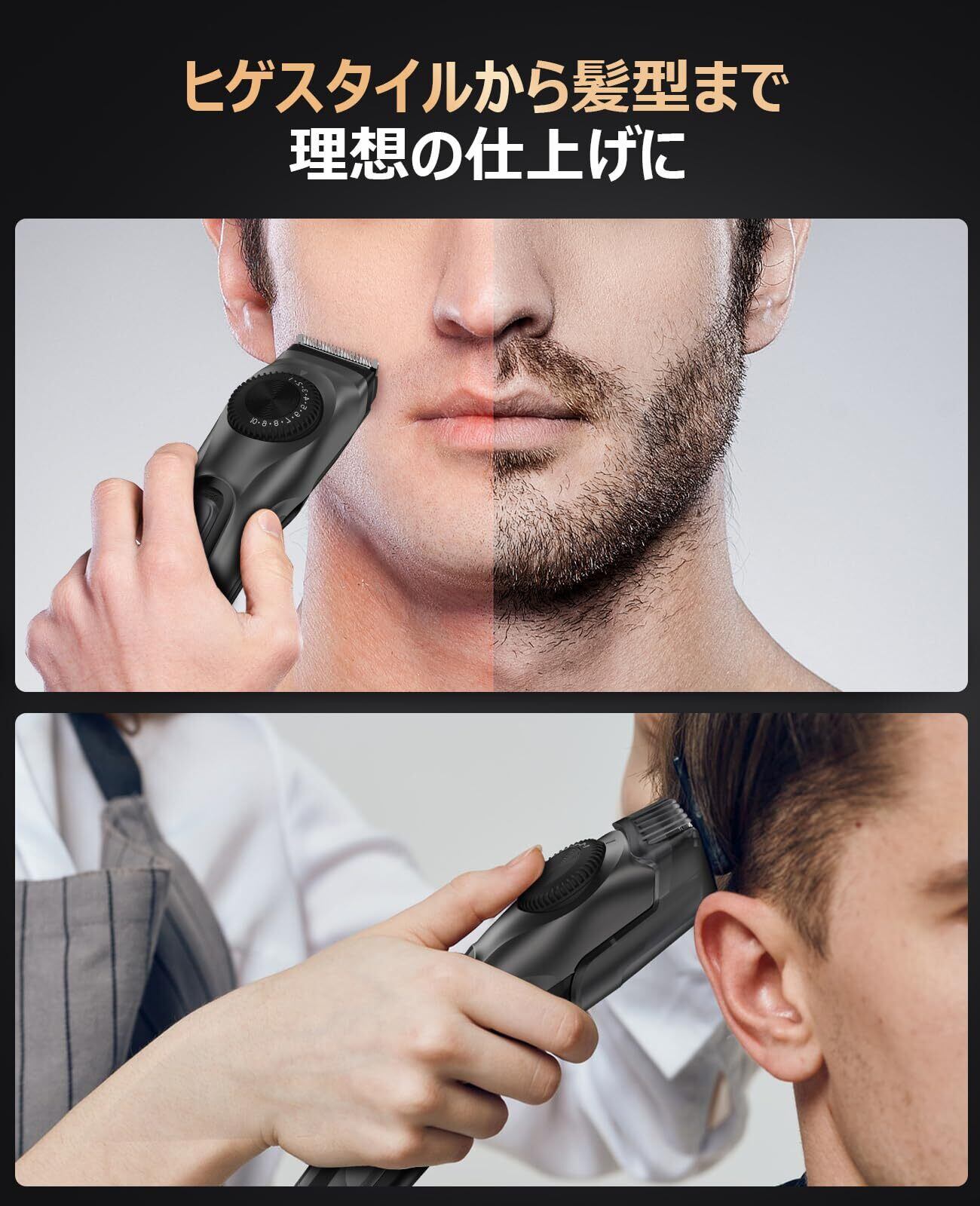 ヒゲトリマー バリカン メンズ 髭剃り 2020最新改良版 調整幅0.5mm 39段階長さ調節 自動研磨 USB急速充電 LEDディスプレイ 残量表示 1時間フル充電 90分連続使用 水洗いOK ひげ もみあげ 散髪 ボディ シェーバー 業務用 家庭用 髭造型ツール付き 日本語取扱説明書付き