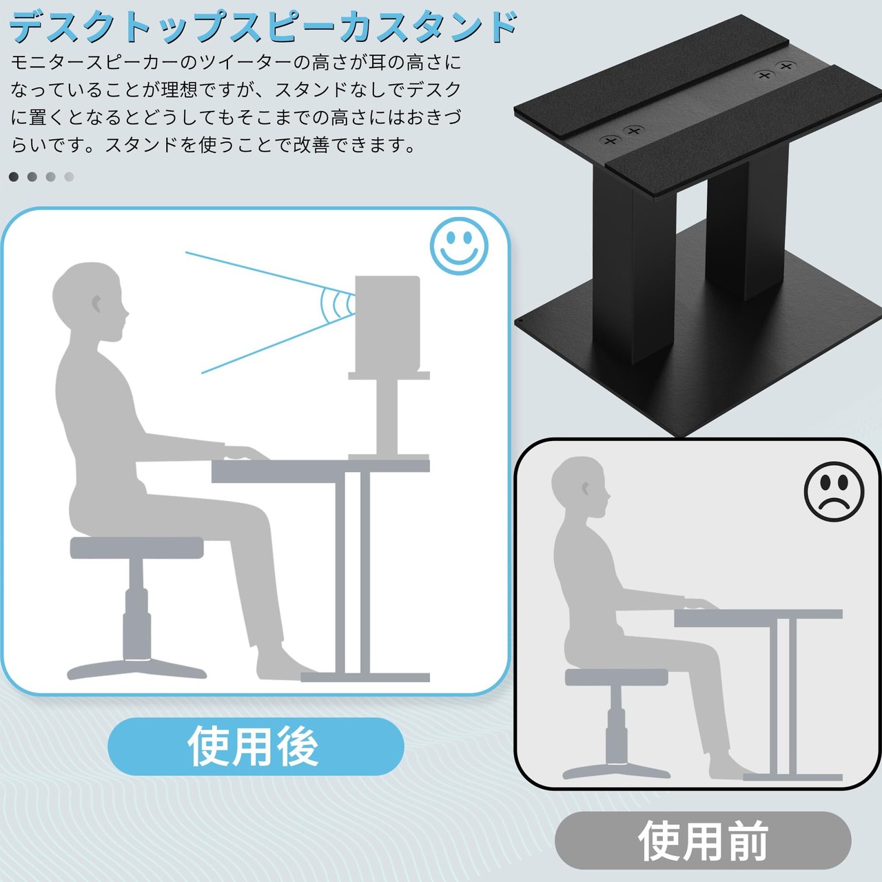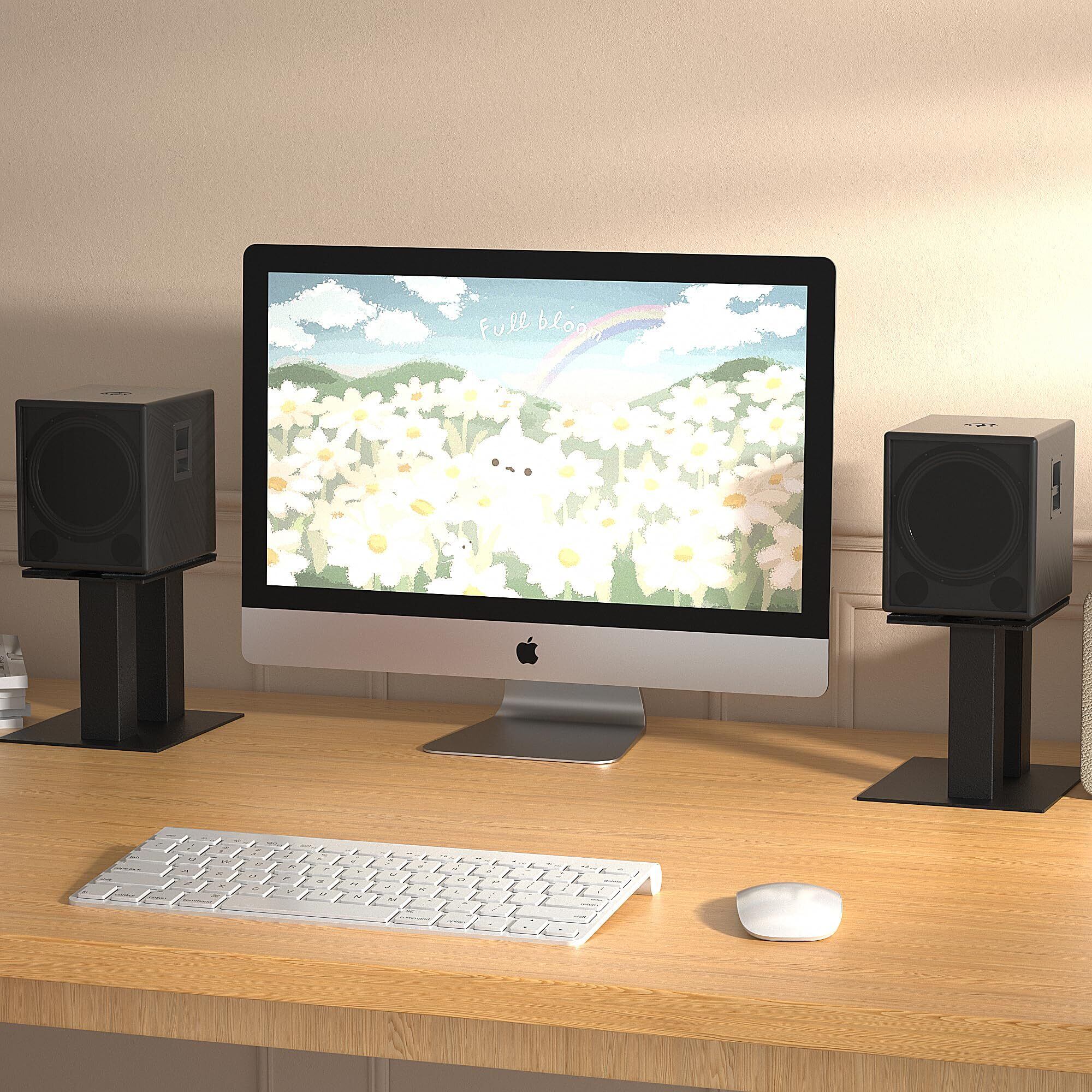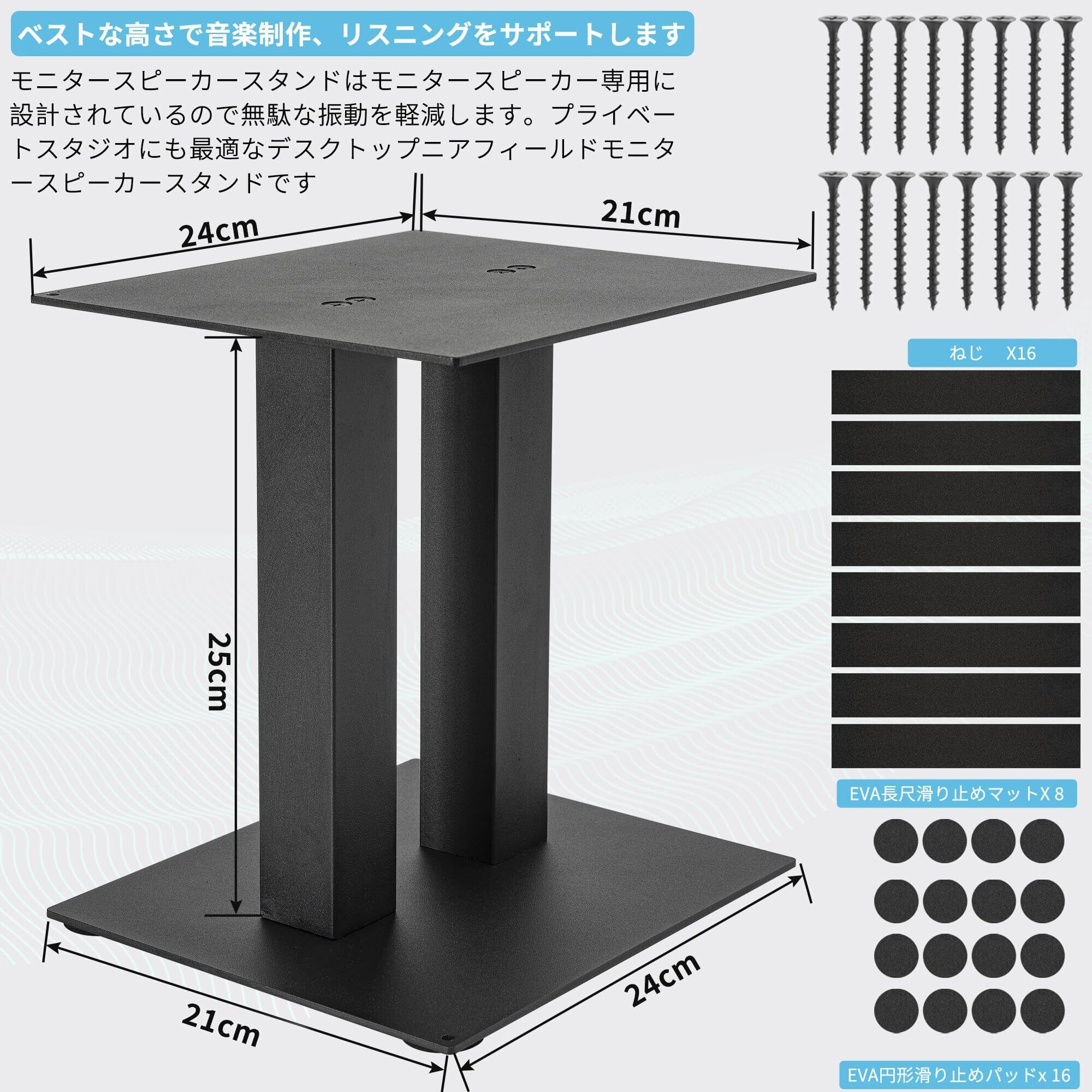 BQKOZFIN スピーカースタンド 卓上 小型 金属製 天板:240mm×210mm 高さ:250mm 耐荷重30kg [2台1組]