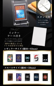 【国内で販売しているトレカほぼ全てに対応】PT35対応のインナーケース付き。溝有りのタイプとは違い、カードを折れ、キズや擦れ、汚れからしっかりと保護する事ができます。 【スタンドも付属】スタンドも付属。そのまま飾る事ができます。