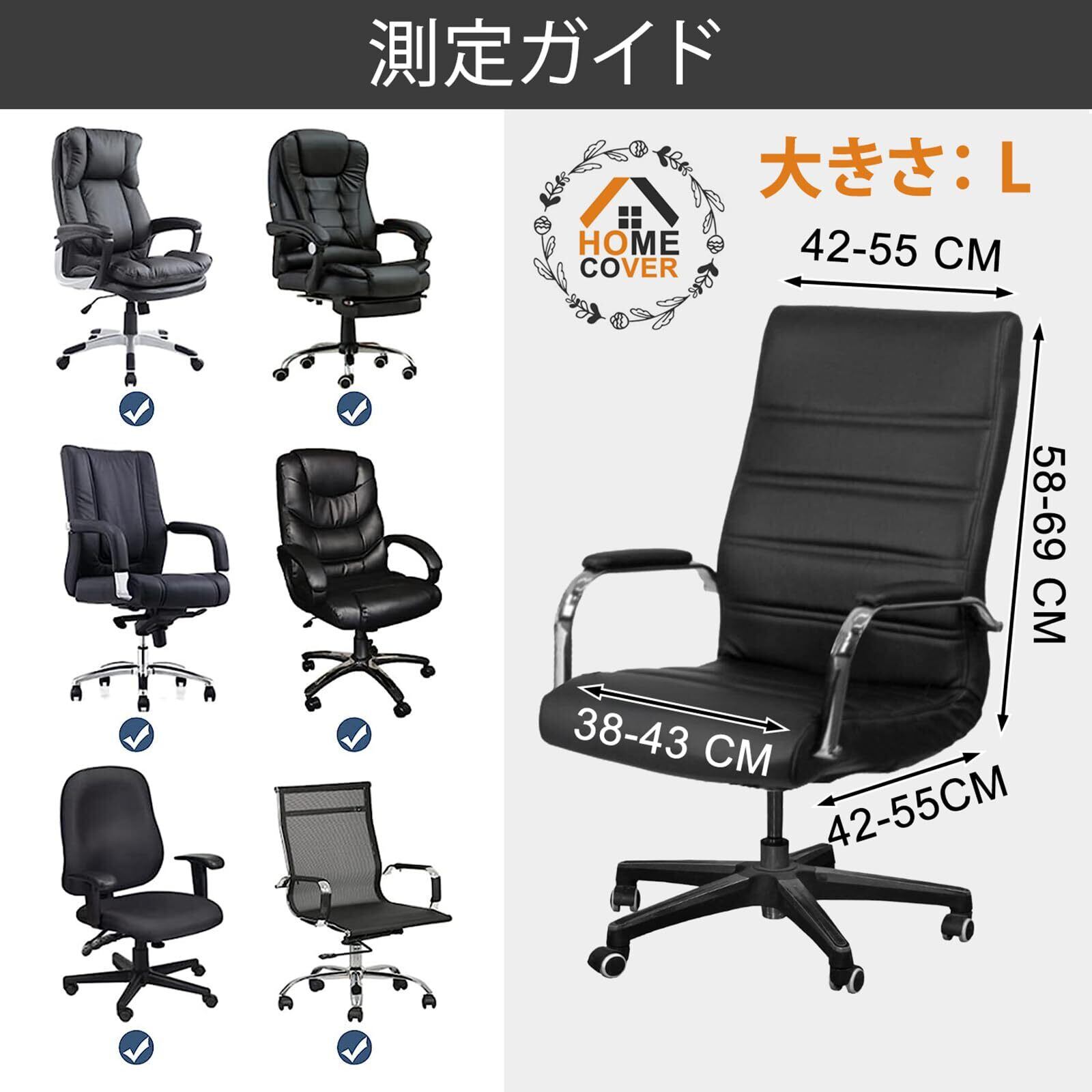 サイズガイド:L は椅子の背もたれの高さ 58-69CM,椅子の座面の長さ 42-55CM, 椅子の座面幅 38-43CM.ご注文前に椅子のサイズを測ってください.(包装:1PCオフィスチェアカバー+2アームカバー)