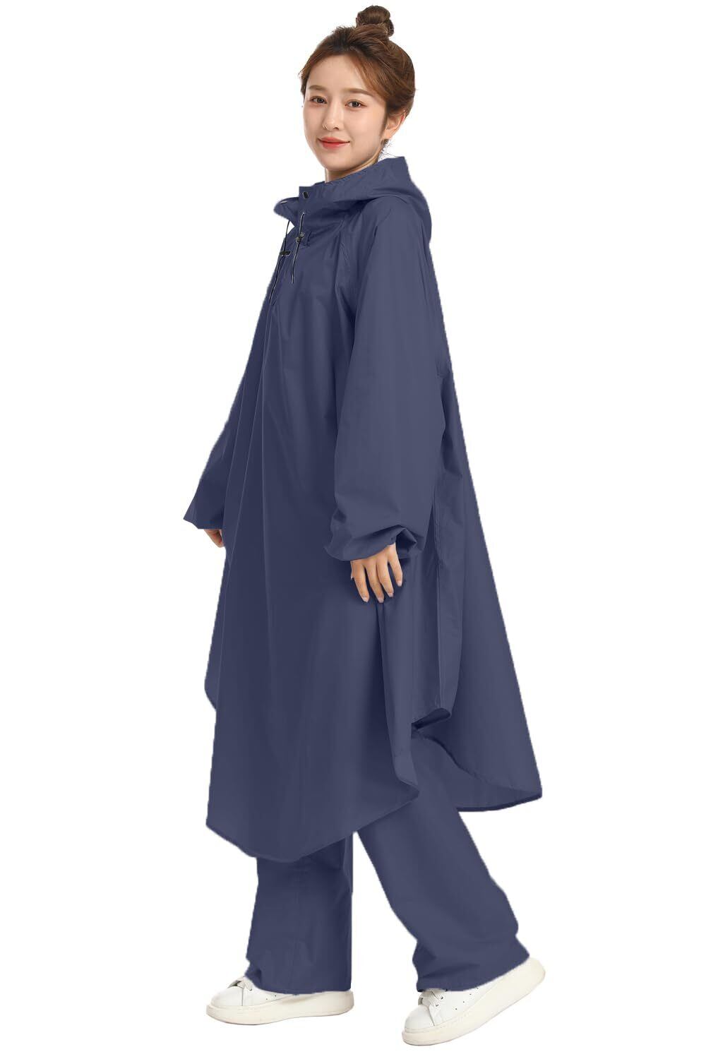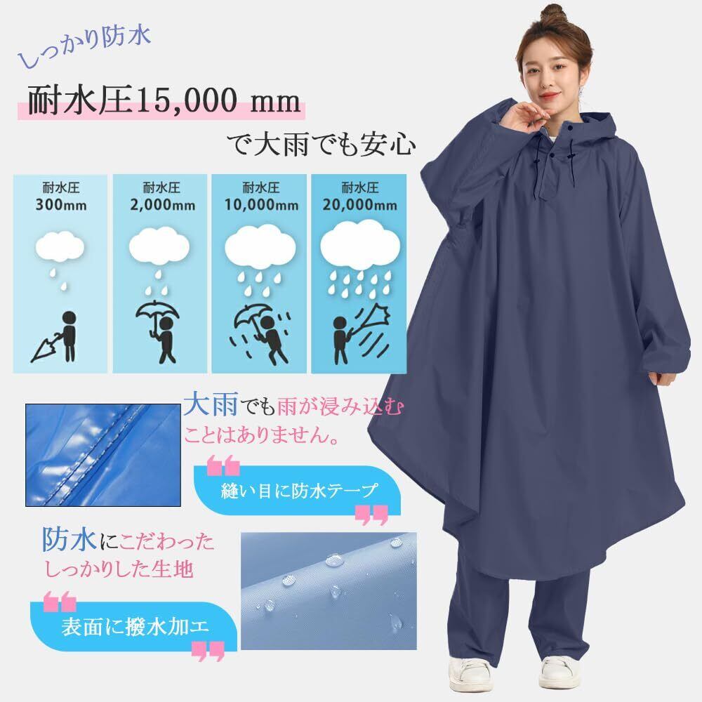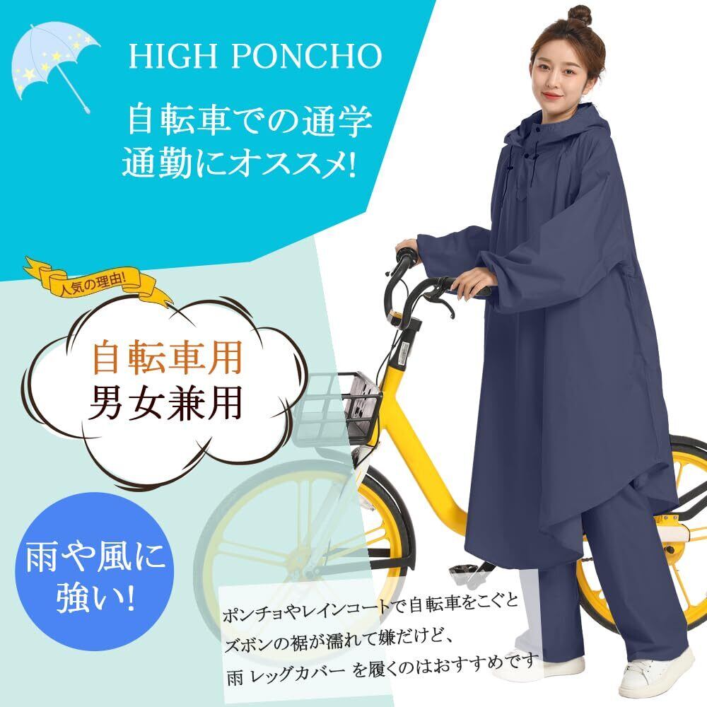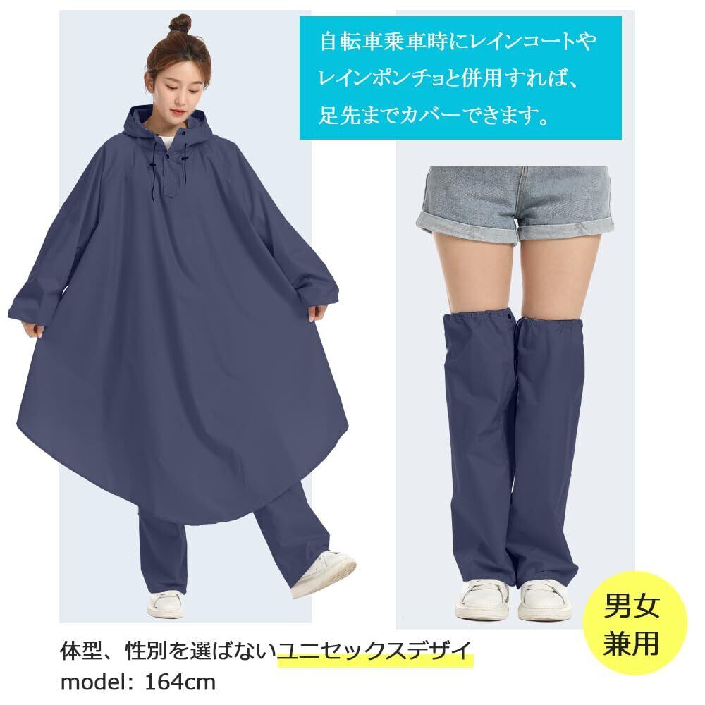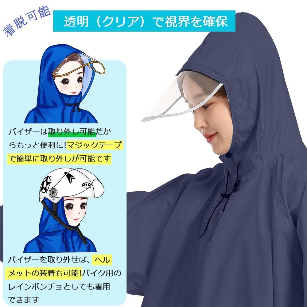[BUQIREN] レインコート 自転車 レインポンチョ 通学レディース メンズ 大きめ ロング リュック 透明バイザー 防水 雨具 雨カッパ キャンプ 携帯 通勤 通学 ママ 保育園の送迎 袖あり バイク ポンチョ シンプル 定番 アウトドア おしゃれ 収納袋付き (ネイビー,レッグカバー付き)