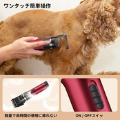 【簡単操作&お手入れラクラク】 軽量コンパクトで人間工学に基づいたデザイン。手にしっかりフィットし、ワンタッチ操作で使いやすい設計です。ブレード部分は水洗い可能で清潔を保てます。初心者からプロまで快適に使える一台で、サロンに行く手間を省き、ペットケアをより簡単に。