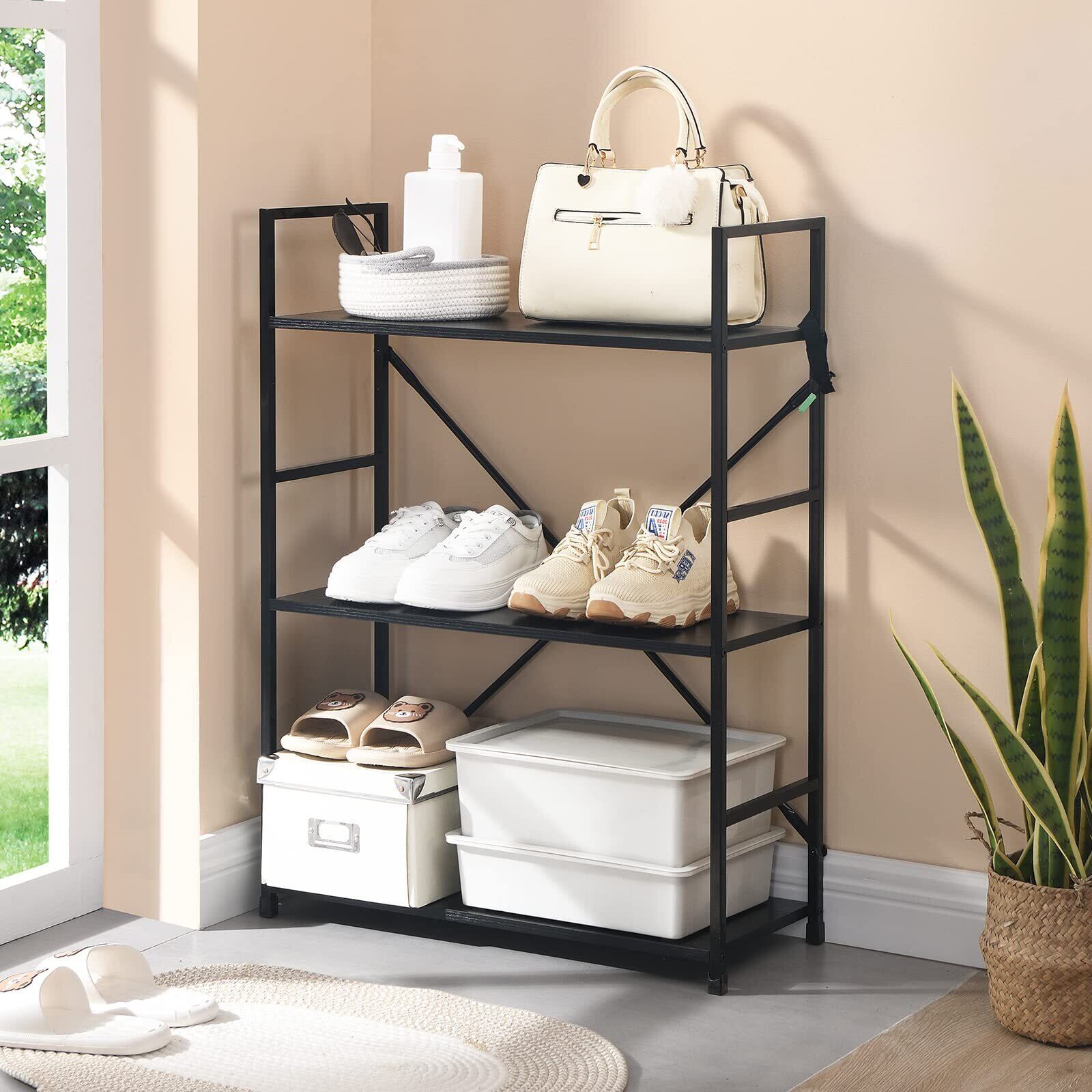 【スリム収納&おしゃれ】3段式装飾棚、シンプル&スリムな構造、ファッション、実用的です。本棚、収納ラック、植物のスタンドに十分なスペースを提供します。オフィスの棚、居間、キッチン、リビング、書斎、寝室などに適しています。