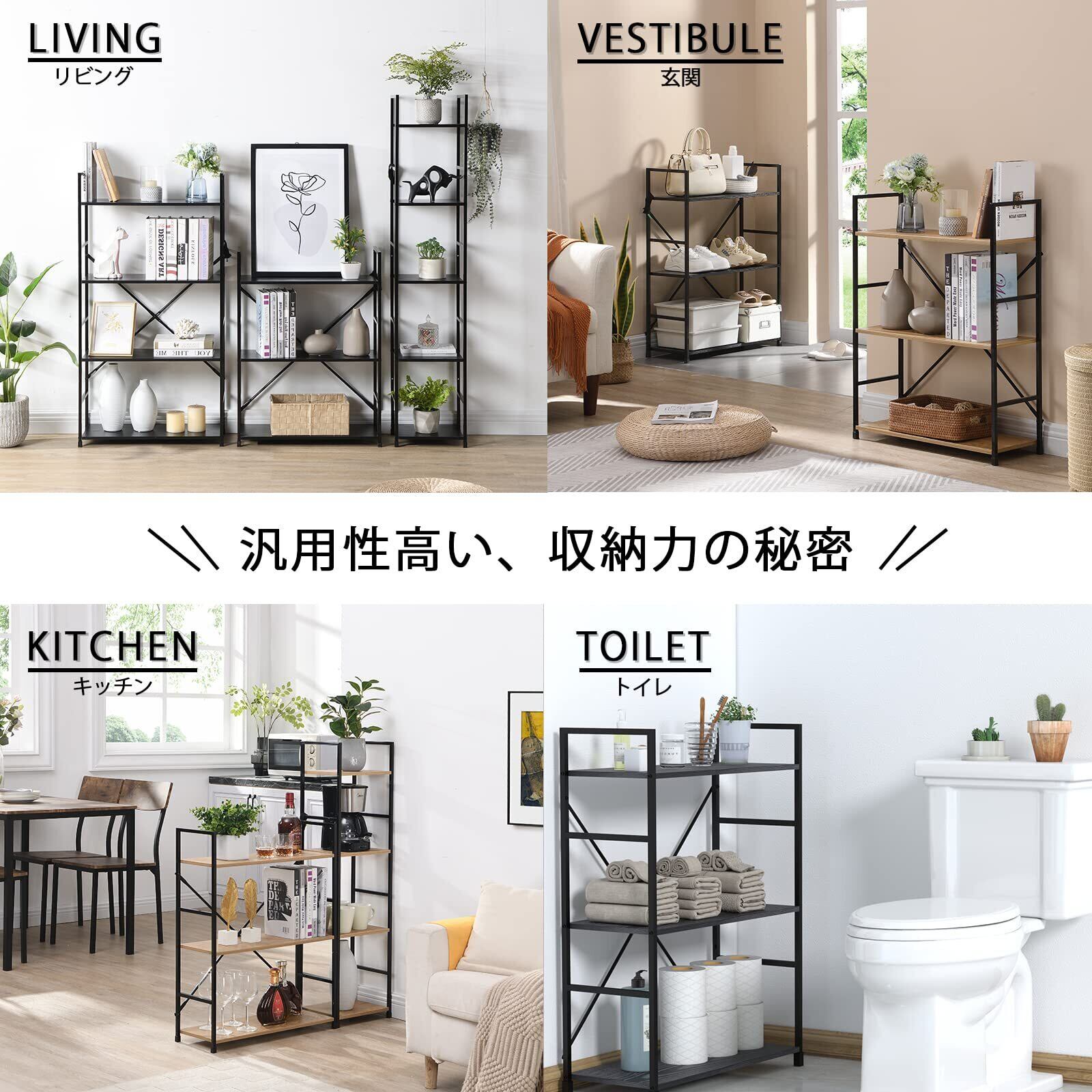 【安定性&耐久性】クロスバー補強金具あり、背面のクロスバー補強金具で更に安定性をアップします。頑丈な金属で作られており、傷がつきにくく、耐熱性と防水性を備えています。本棚の安定性を確保するために底部に4つの保護キャップ。