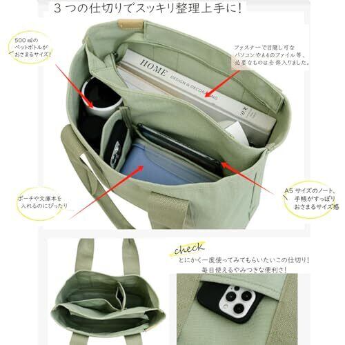 [Volsha] トートバック 仕切りトート キャンバス A4 横 大容量 レディーストート キャンバス 無地 自立 キャンパストート帆布 通勤通学