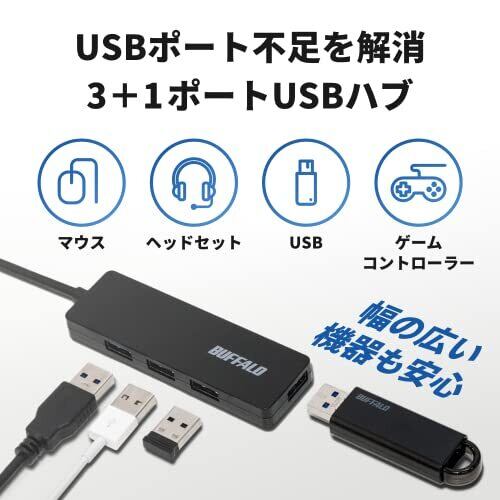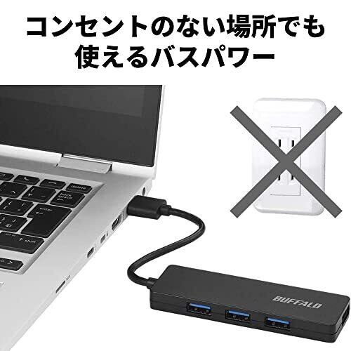 バッファロー USB ハブ USB3.0 スリム設計 4ポート バスパワー 軽量 Windows Mac PS4 PS5 Chromebook 対応 テレワーク 在宅勤務 BSH4U125U3BK